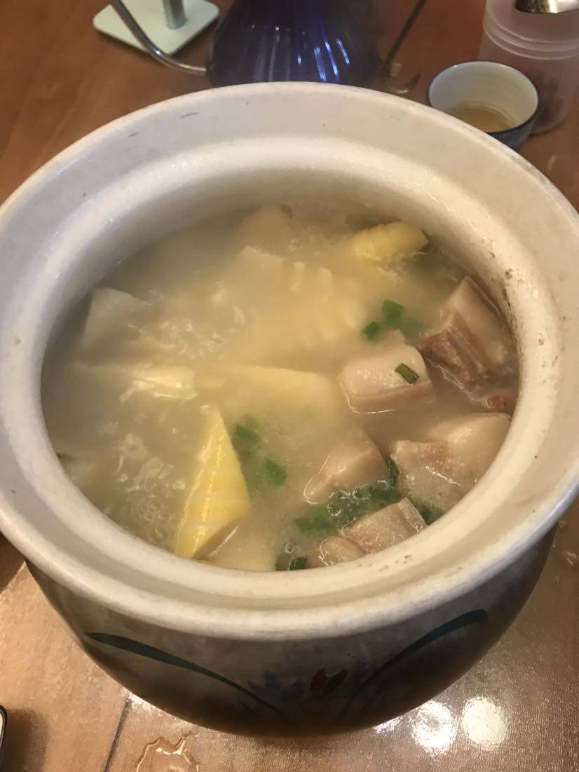 我烧咸肉竹笋汤吃,周先生不爱皱着眉头说,你怎么喜欢吃笋这种东西,它就一木头