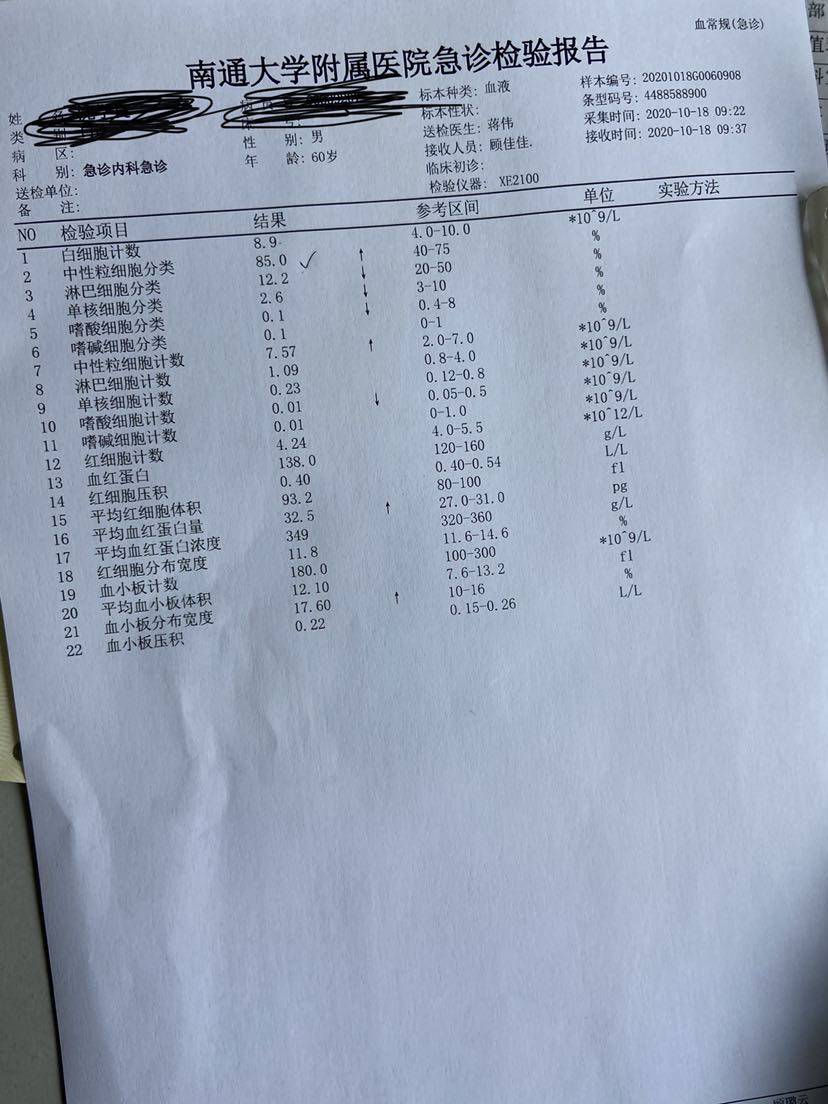 求助,肺鳞癌第一次化疗后发烧!
