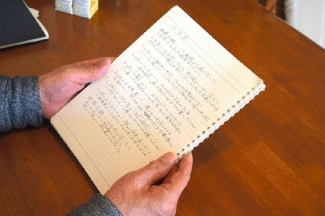 那就是容子之前一直藏起来的笔记本,上边记载着容子从认识英司到患病之间的心路历程,这本日记封皮上写着:“两个人的故事”。第一篇以“相遇”为主题,标题是“你还记得我和你第一次见面那天吗?”。英司笑着回答:当然,我清楚地记得,那时你穿着一件绿色的外套。那是大学一年级的一个冬天,那天我问你借课堂笔记……。之后就是两人结婚生子的过程,“我们结婚了,英司说无论走到哪里我们都要在一起。”“英司要去外地了,我们不能每天都见面了,我好希望他能留下来。”这之前的内容都很活泼,但是确诊之后的内容开始变得伤感。2015年10月3日,抗癌药副作用发作,她怀疑自己不能继续站在厨房了。2016年3月8日,容子第八次注射抗癌剂,虽然痛苦但这是英司希望她做的事情。