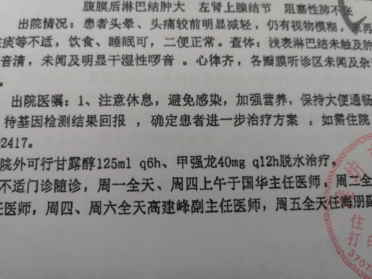 我妈妈也是脑转入院,腿无法自己行走,需要人扶,打了甘露醇,做了脑部电疗,上了一次培美,现在等基因检测报告
