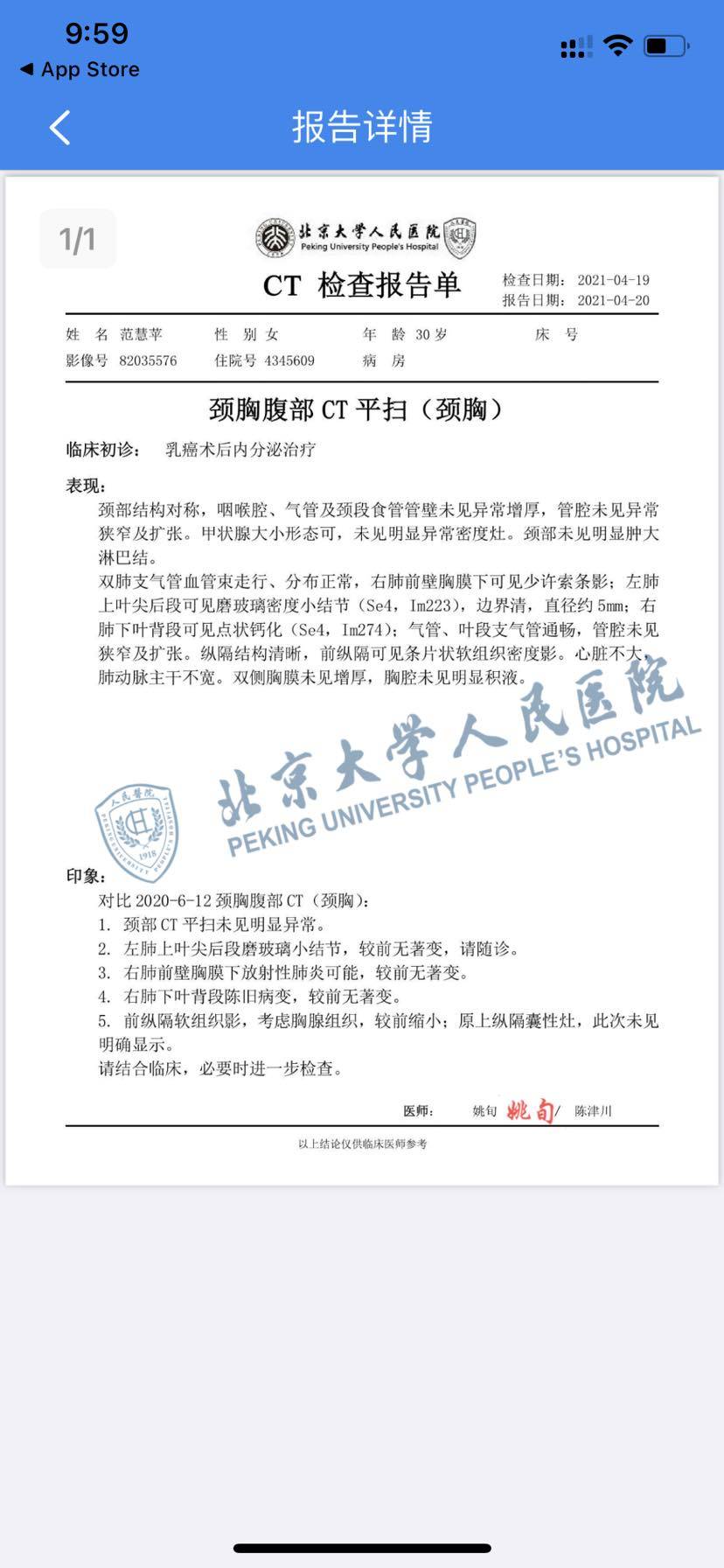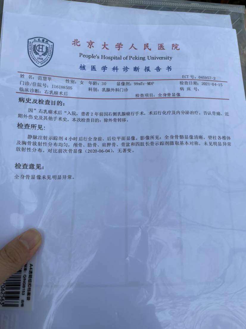 前几天听病友说没有进口药了,还有人民大学医院复查ct 都预约到7份了,去年是5月开单子预约到6月份大复查的,所以想着今年还是要提前些,正好4.12到了开药的日子所以约了主治医生的号开药➕开复查单子,我吃的内分泌药是依西美坦,去问了大夫说有的还好不用担心换药的问题了。复查的单子开了全套的,骨扫描,钼靶,ct ,B超,抽血,