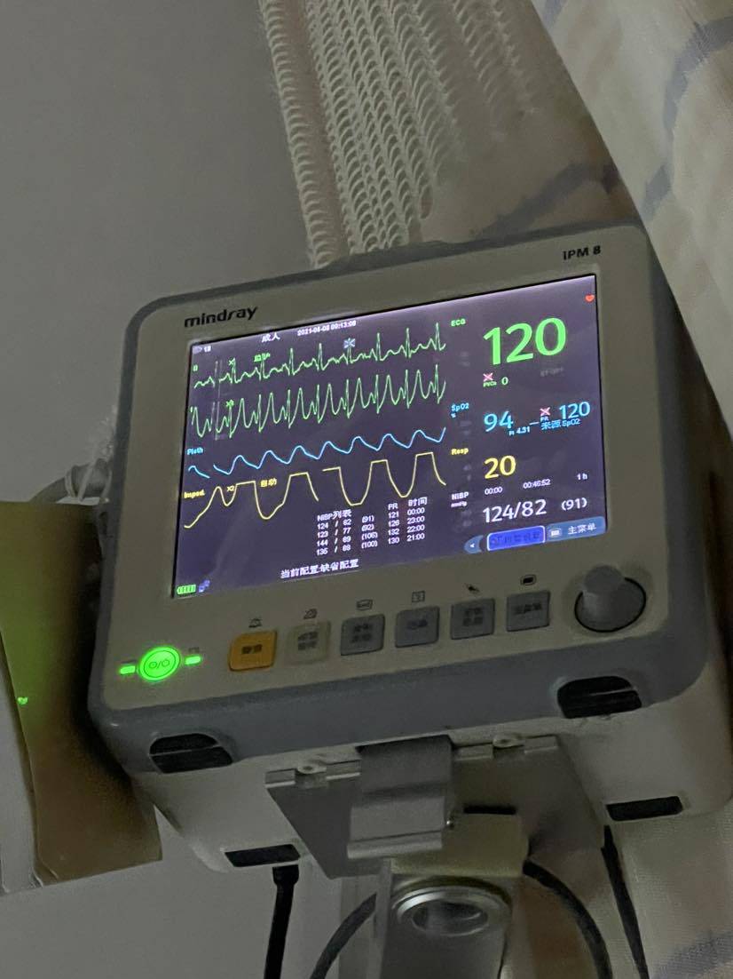 6月4日突然呼吸困难,离不开家用制氧机,血氧跌到了五十几,心跳130+、149+、最高150,我们以为是肺栓塞(卡博和奥氮平副作用?),吃了法华林,5日早上五点呼吸更困难,救护车去了医院。