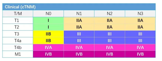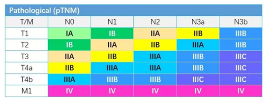 比如医生一看片子,肿瘤看着侵犯到浆膜下,对应的就是T3,有1个或多个淋巴结转移,那就是N1-3(只要淋巴结转移都相同分期),结果就是III期,非常简单,值得注意的是,在临床分期中,有个特殊的T4b,只要是T4b的患者,专门归类为IVA期。