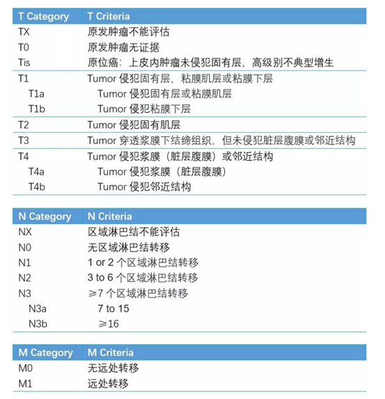 胃癌的三个分期系统
