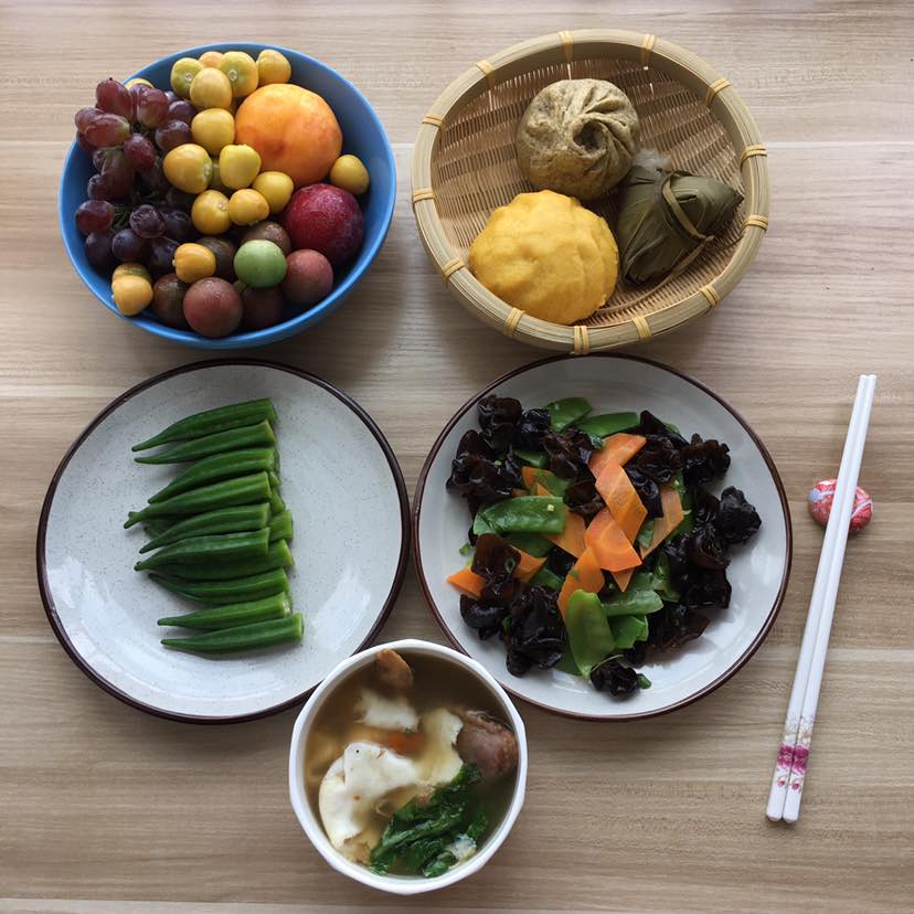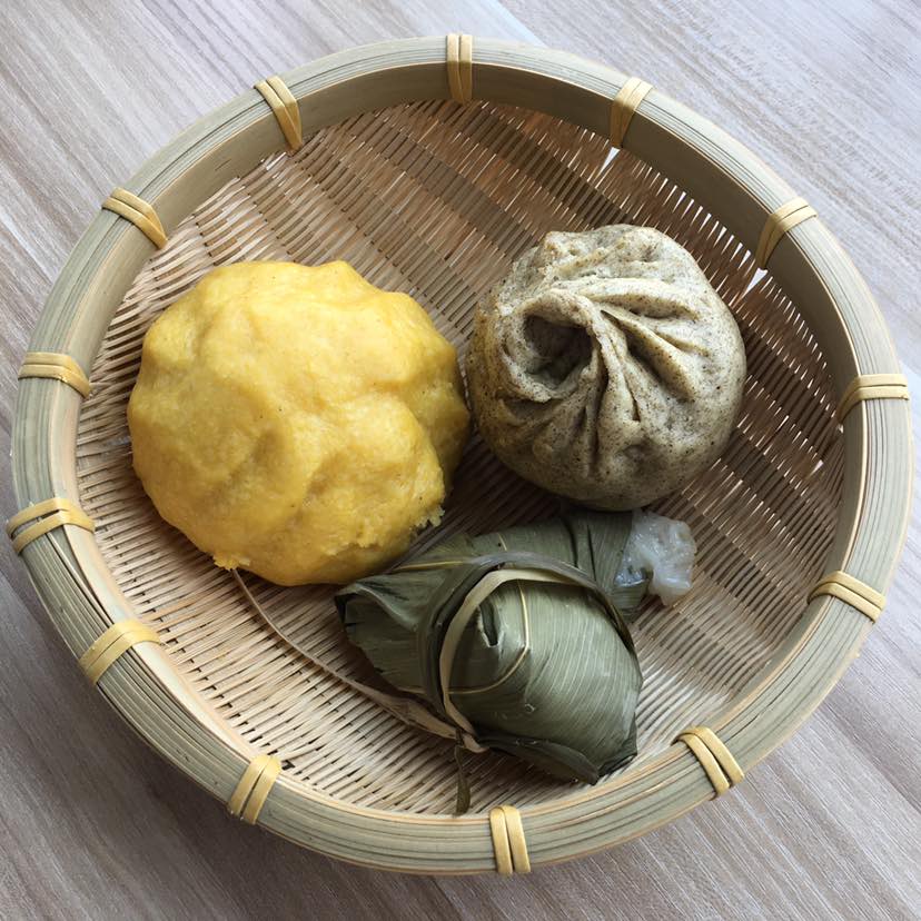 玉米面窝窝头,粽子和荠菜猪肉包子