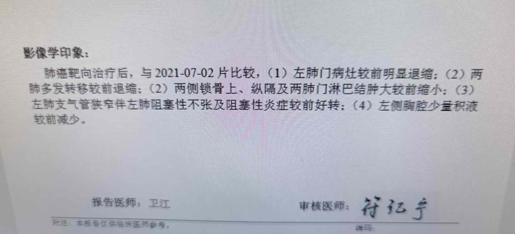 最后说一下老妈服用阿来替尼一个月的效果。(因为经常会搜阿来替尼的帖子,相信其他病友也会这样,所以想分享出来给大家一点参考)