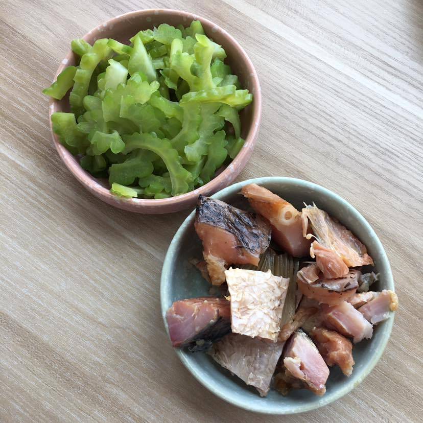 拌苦瓜和蒸鱼干