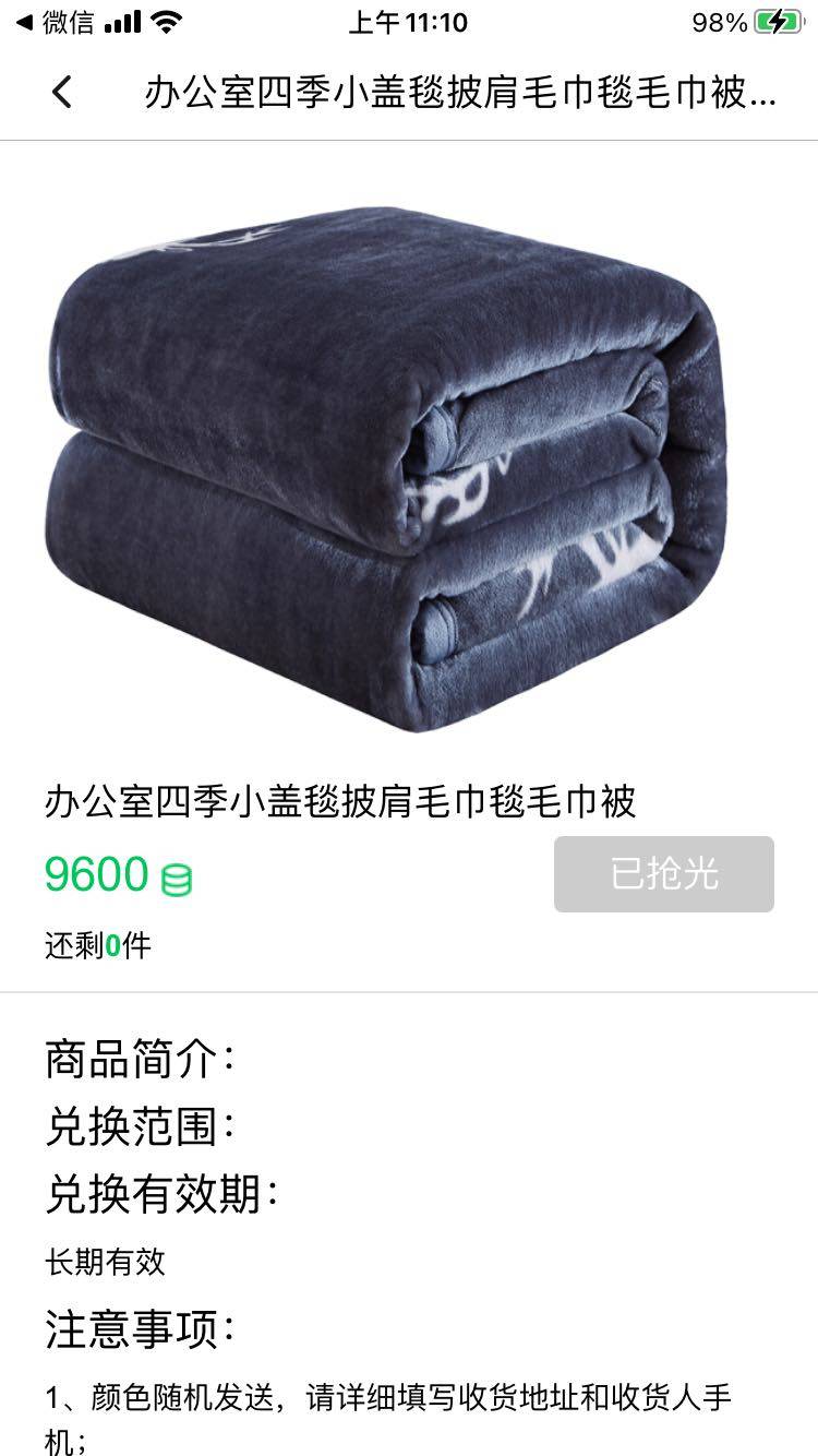 积分商城每个月1号会更新礼品上去哦,不过眼瞧着立冬了,给大家提前上新了这个毛巾被,想要的觅友们可以去兑换啦