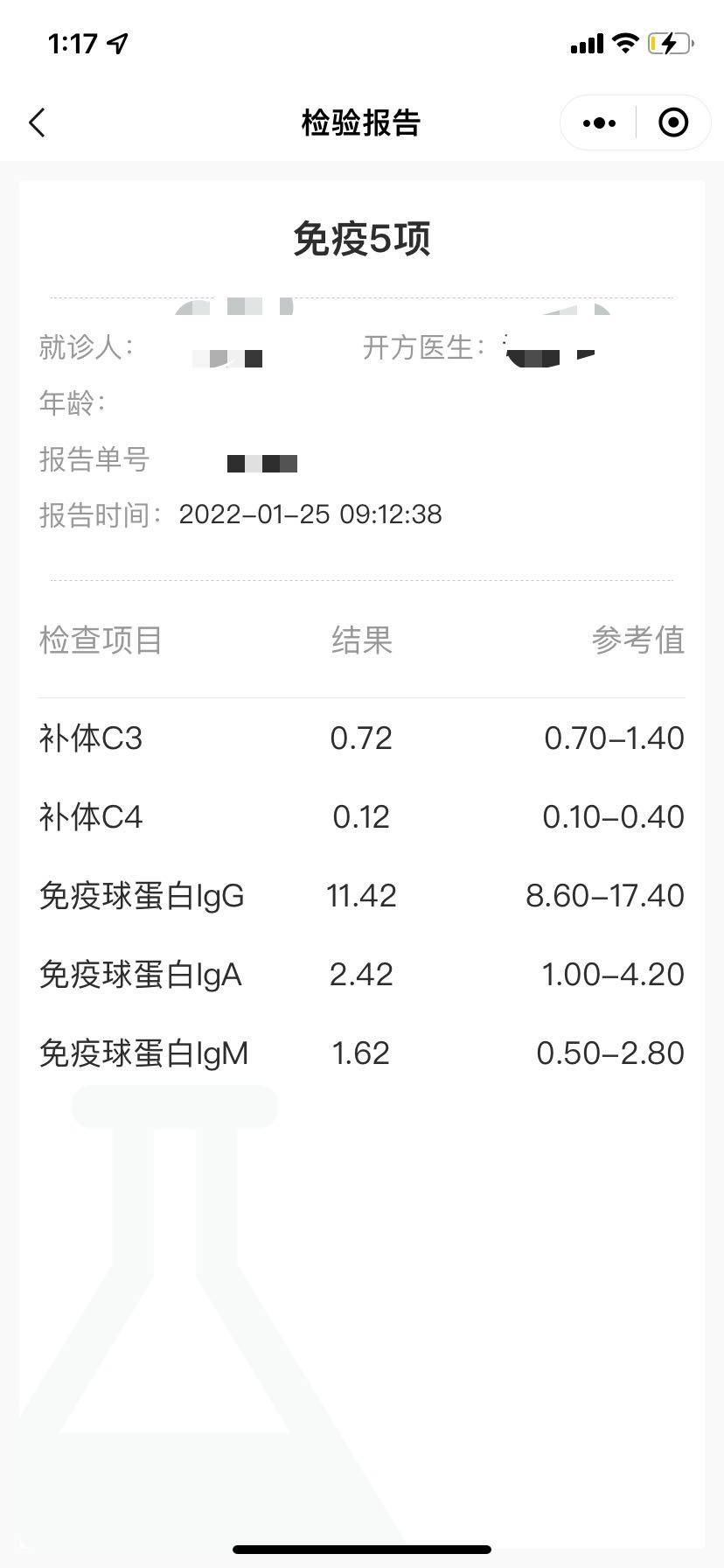 阿对了!前两天复查了(因为出院只能带一个星期药),简单检查了几项,很惊喜!我的抗体一开始,C4只有0.03,接近零,现在。