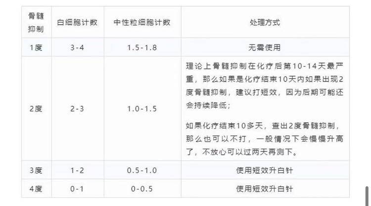 我第四次化疗已经输完了,照例3天查一次血常规,扎手指的那种,弊端就是无名指受罪加上频繁跑医院,好在也近。前两次化疗情况比较好,骨髓抑制没有太严重,毒副作用的叠加,导致第三次化疗白细胞计数和中性粒绝对值都在1度到2度骨髓抑制的临界值疯狂地试探,1度骨髓抑制一般不需要打升白针,而3度4度是需要打升白针的,争议主要在2度骨髓抑制,结合我前两次的恢复周期,我告知主治医生我每次在化疗后第15天是最低点,第16天数值就回升,第17天就完全正常,看了我自制的前后所有数据对比表格,医生说这次虽然达到了2度骨髓抑制,但结合我的恢复周期,还是可以考虑不打升白针,让我两天后再查血常规,于是我与升白针擦肩而过了。