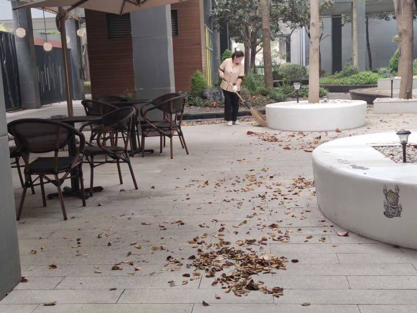 秋风随意走,保洁累死狗。说好的秋风扫落叶,@秋风!你为什么不扫要让保洁扫。说好的落叶归根,@落叶!你为什么要落在水池里,为了捞你保洁恨死你!