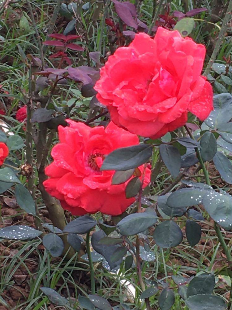 今天早晨起来的时候,天上下着小雨,但一会儿🌧️就停了,为避免下午有雨,趁着是阴天,就把散步改在上午完成了。散步来到玫瑰园,可能南方今年的冬天太暖了吧,玫瑰花、月瑰花都争相绽放。