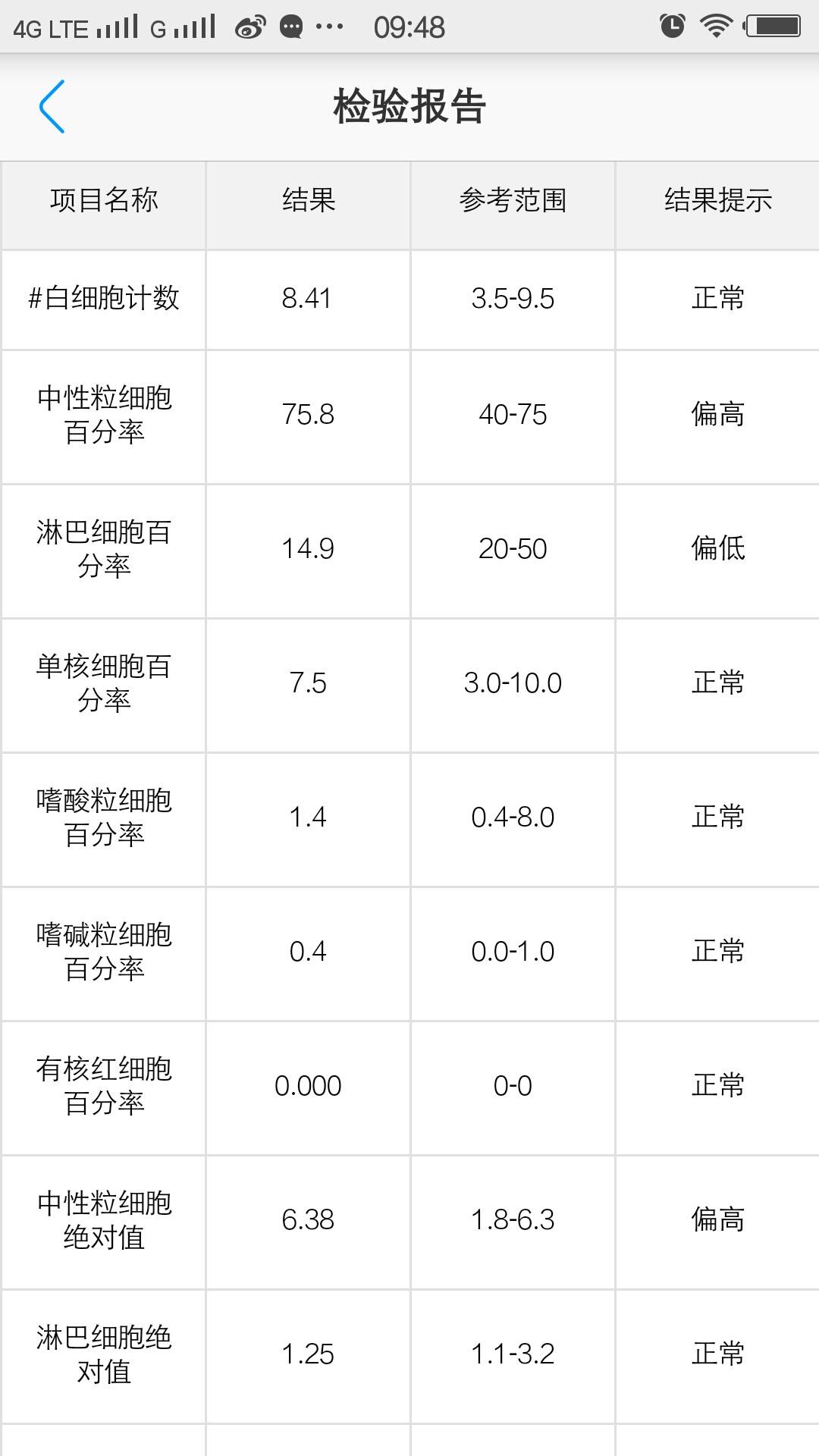 血常规检查中性粒细胞偏高……