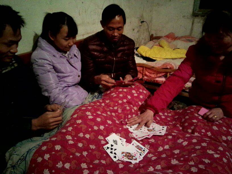 这一家人啊,无聊得,我也是醉了,婆婆出主意斗地主,说斗一块钱,叫我和老公跟他斗,我不愿意(主要是不好意思,其实我很喜欢斗地主的,但我还是忍住了)后来就叫了公公来斗,说我不斗就专业帮洗牌,发牌