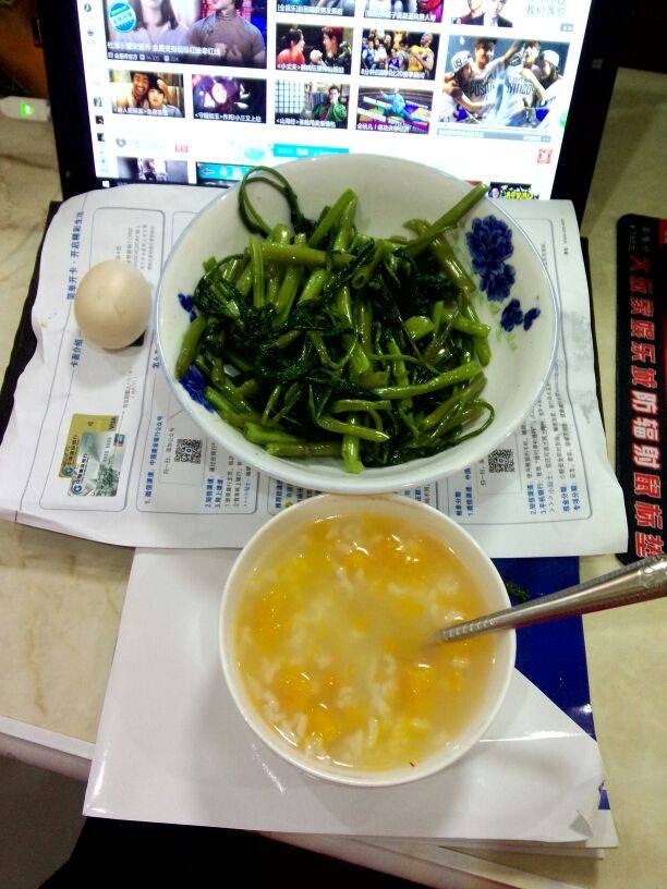 那个盘能放在键盘上呢,空心菜,想吃,早上去买,没买到