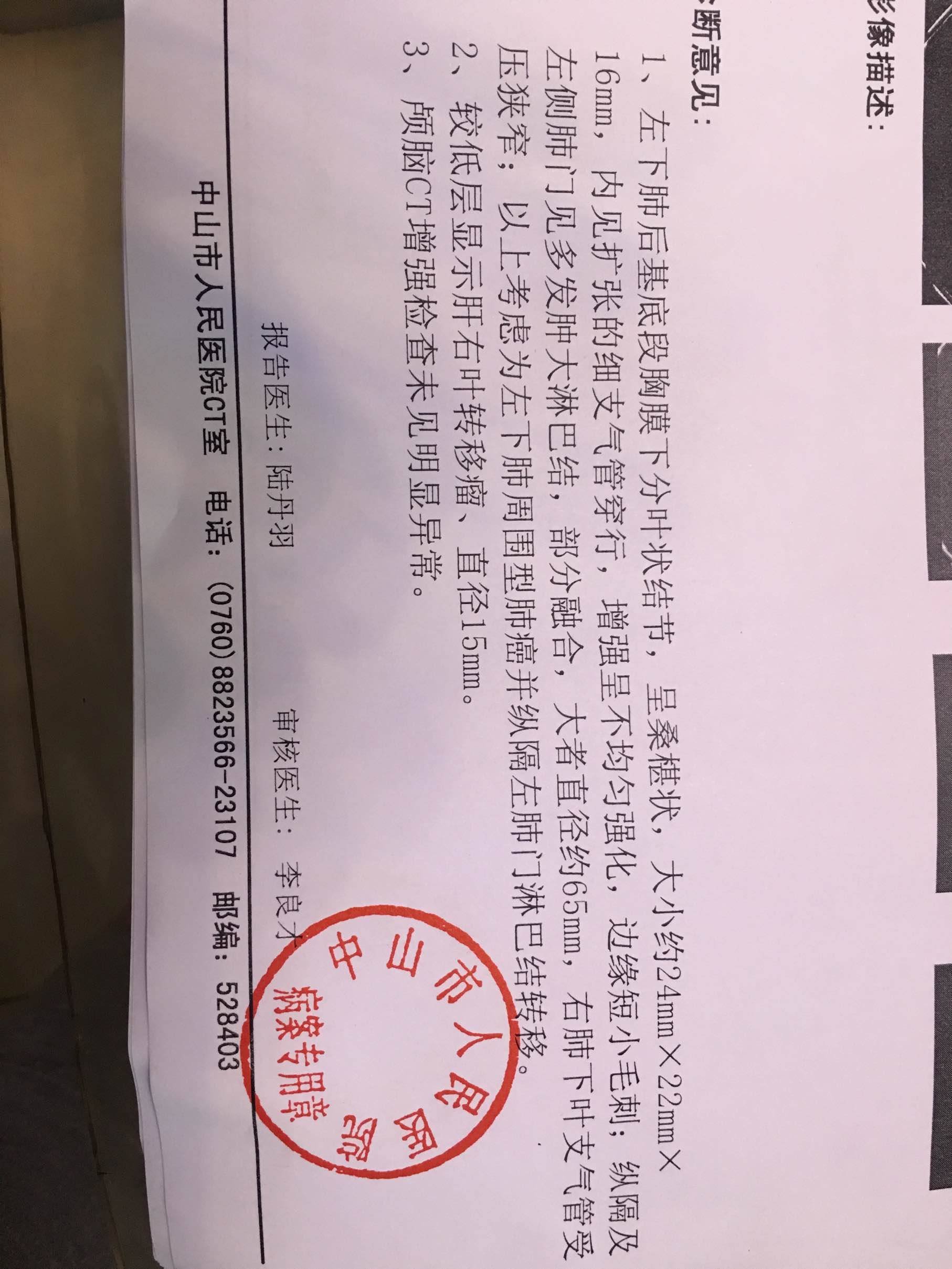 我也是中山的 我爷爷也确诊是肺癌 现在在考虑做不做化疗