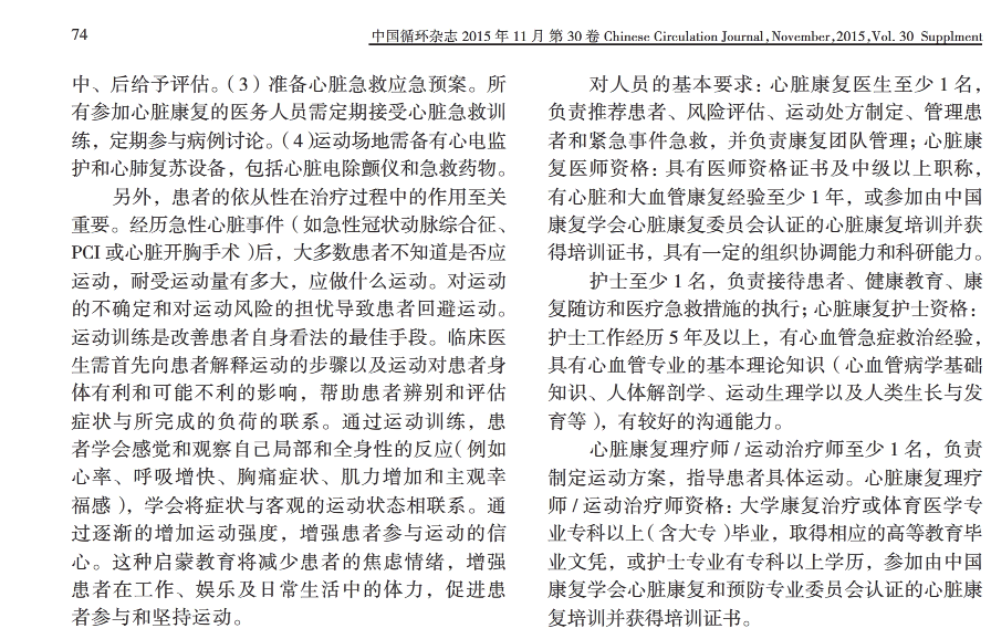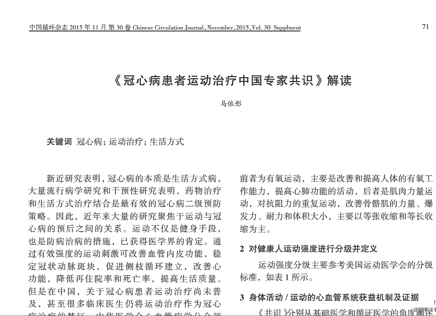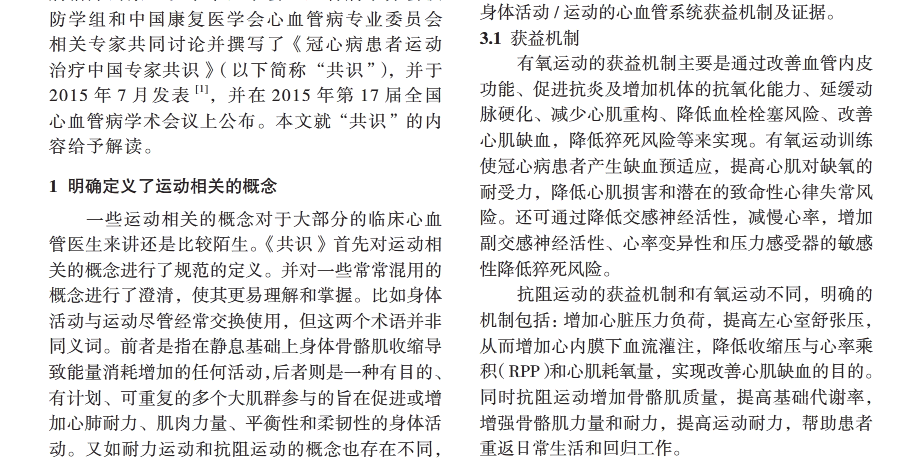 《冠心病患者运动治疗中国专家共识》解读