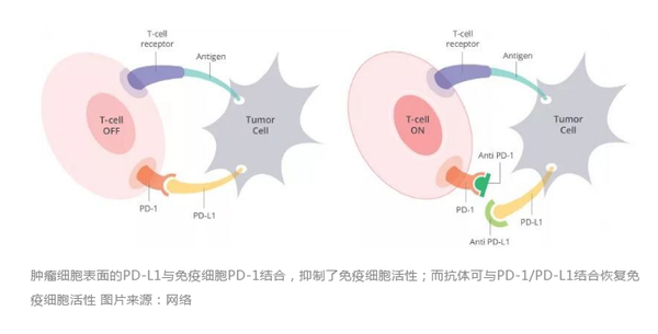 免疫治疗本质上是通过调节人体自身的免疫系统,从而实现治疗肿瘤的目的,免疫治疗包括靶向药物治疗,过继免疫细胞治疗、基因治疗等,本文里提到的免疫治疗主要是免疫靶向药物治疗。医学科学家们设计了一批抗体药物,特异性的与PD-1或者PD-L1相结合,从而实现了信号的阻断,恢复免疫细胞的功能。