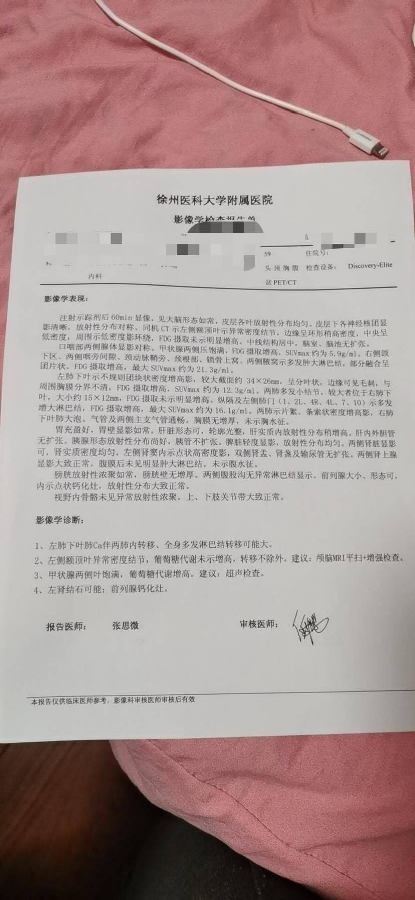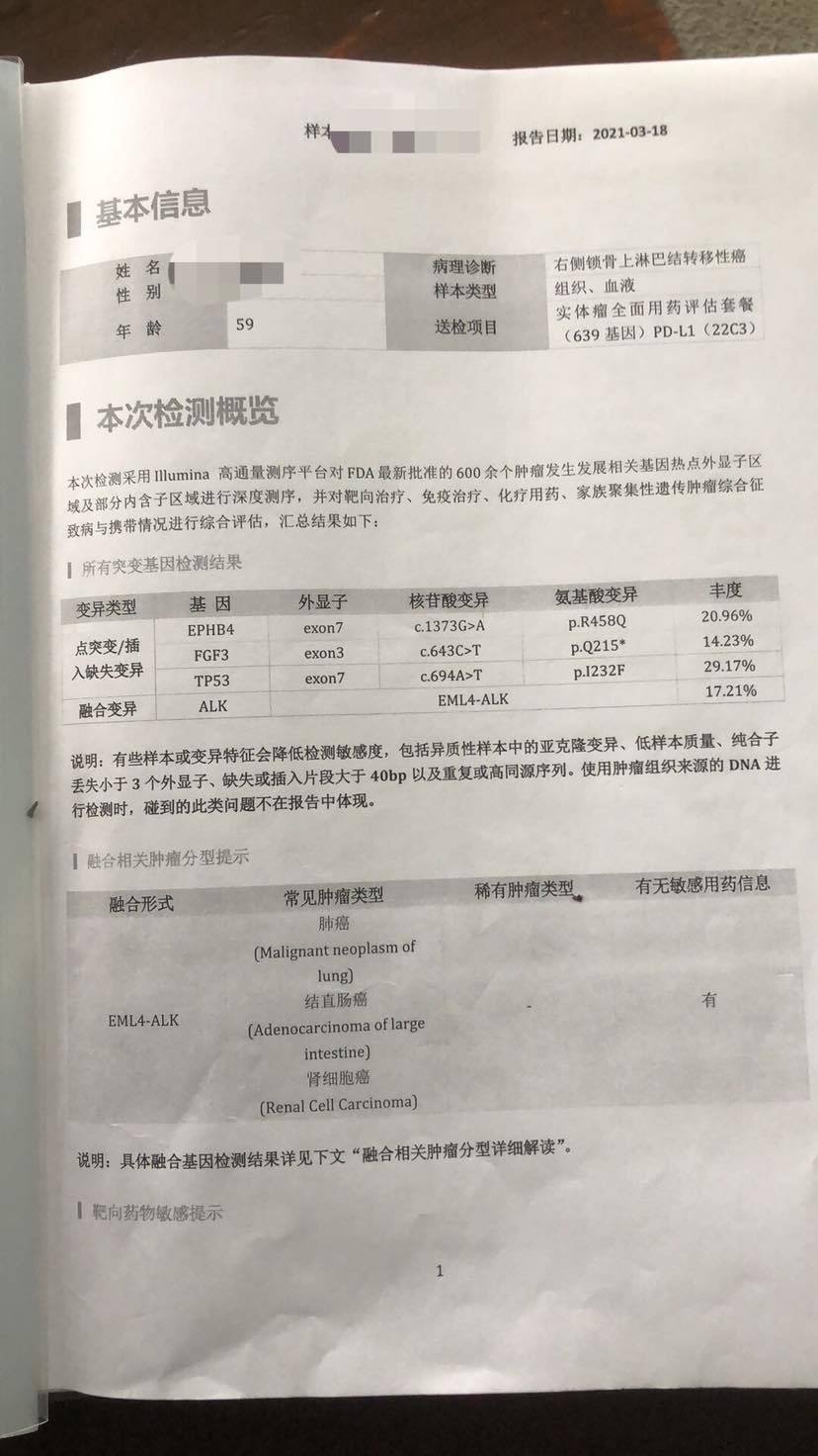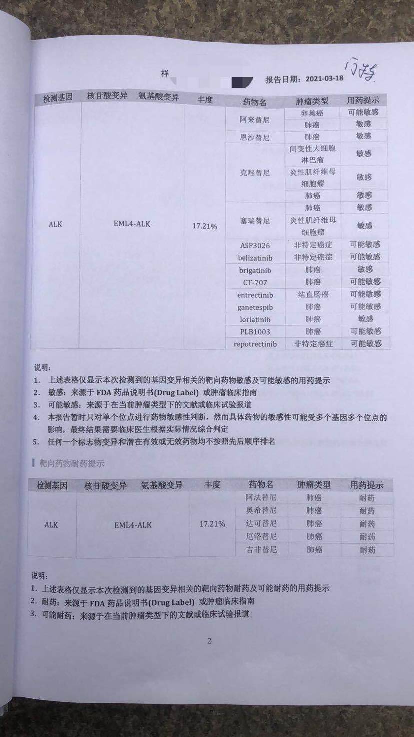 接着去了上海华山医院肿瘤科,在此期间一直在搜索肺癌及转移方面的信息,医生的回复更如晴天霹雳,不再具备手术条件。无助迷茫的我再次跑到外面大哭一场。后来医生建议做基因比对,看是否有靶向药物可用,让黑暗中的我又看到了希望。