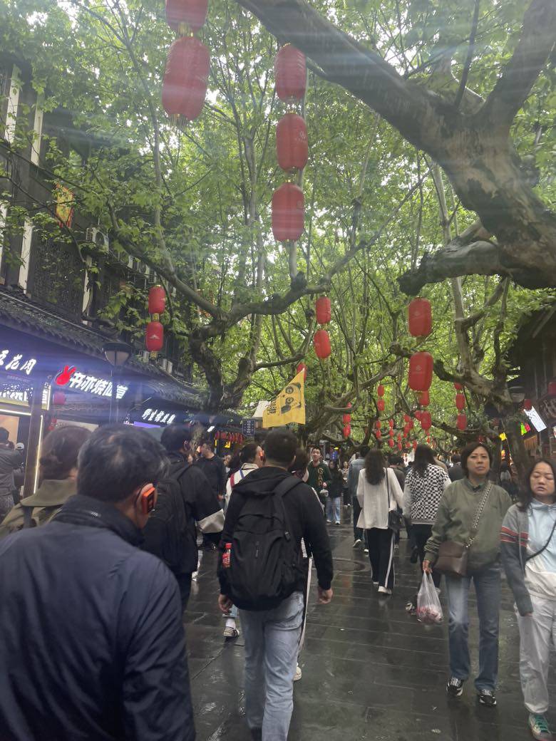 灌县古城里人来人往,熙熙攘攘,看到停车场的大巴车和举导游旗的人都越来越多,证明旅游业正在恢复中。