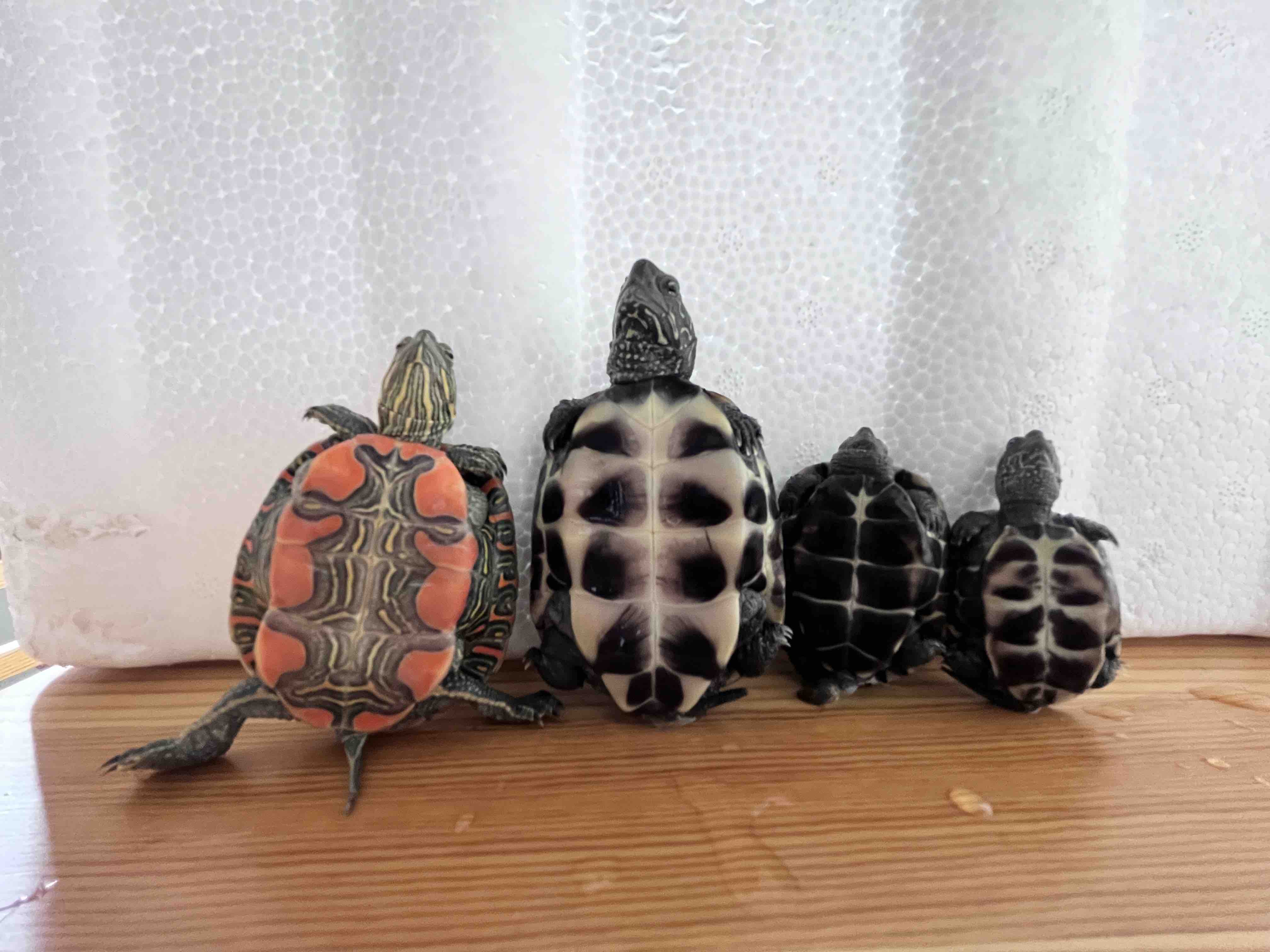 第一只西部锦龟🐢,深水龟,起名红马甲,后面三只草龟,潜水龟,草老大,老二,老三😄