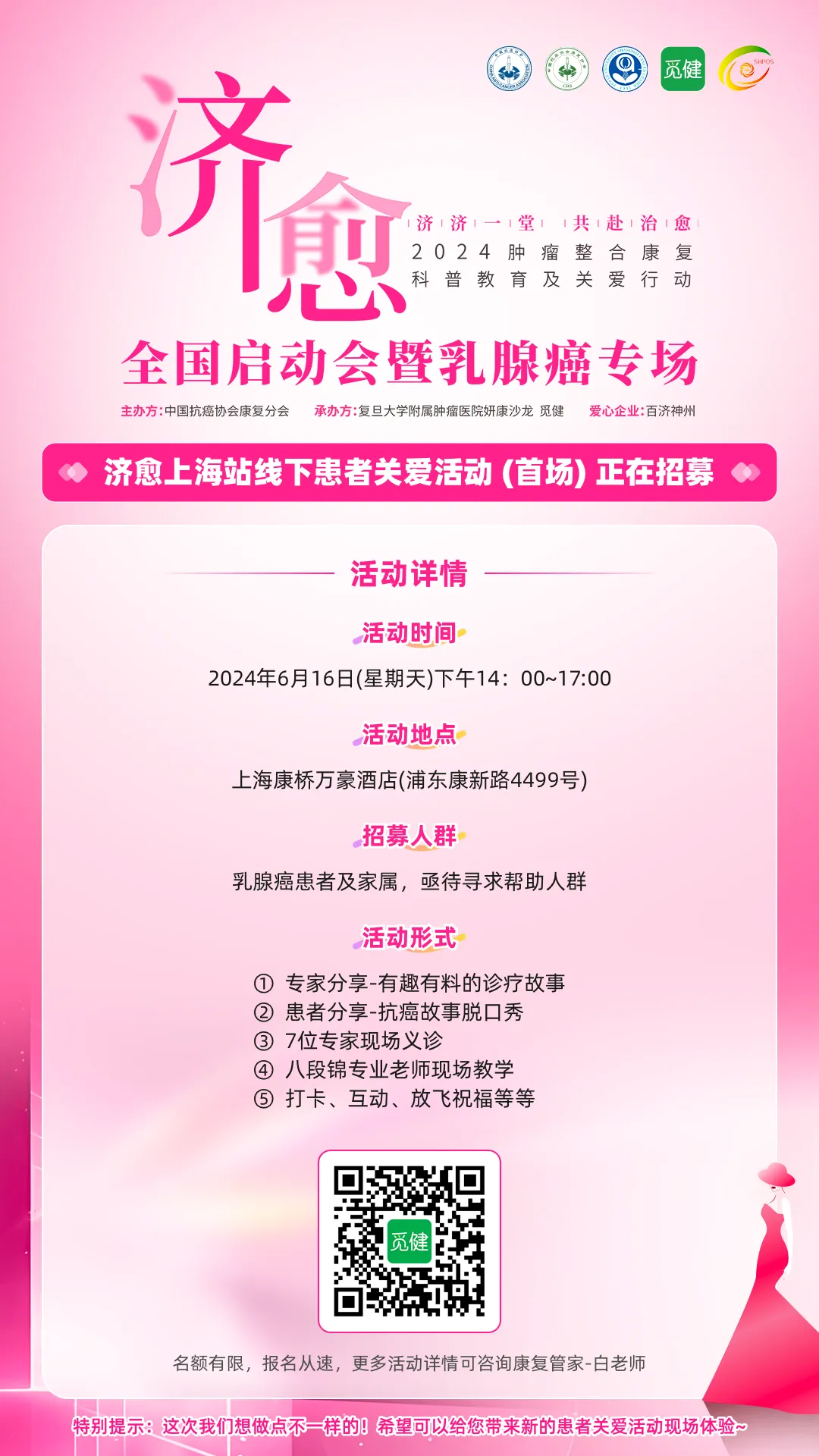 昨天有觅友说她想知道6月16日(周日下午),“济愈——2024肿瘤整合康复科普教育及关爱行动”,活动上海现场教大家八段锦的老师长什么样子,安排!