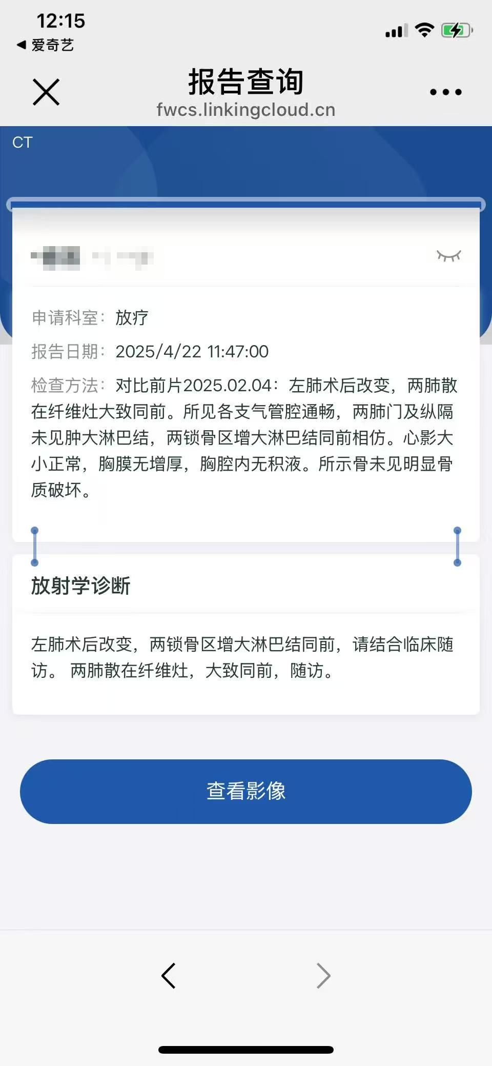 2015 年,频繁的口渴让我踏上了求医之路。本以为只是普通的糖尿病,却在肿瘤标志物检查中发现癌胚抗原数值高达 32。胃肠镜检查虽无异样,但我深知不能掉以轻心。短暂放下担忧,我和朋友开启了苏州、杭州之旅,在如画风景中暂时忘却烦恼。然而,归来后进一步检查,左肺上叶的结节影无情地揭开了残酷的真相 —— 原发性支气管肺癌,还伴有肺门及纵隔淋巴结转移,病理分期 T1bN2M0 IIIa 期,19 外显子突变的基因检测结果,瞬间将我推入了命运的漩涡。