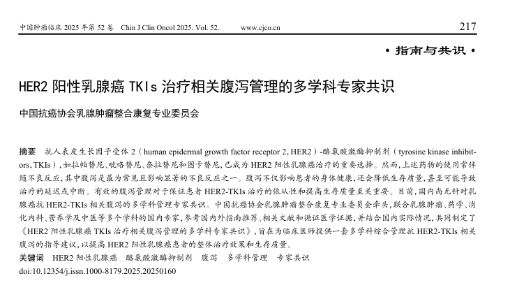 图源:《HER2阳性乳腺癌 TKIs 治疗相关腹泻管理的多学科专家共识》