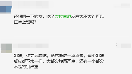 并不是,虽然腹泻是奈拉替尼常见的不良反应,但其发生率和严重程度因人而异。临床上医生会采用“3+4+6爬坡使用法”,降低腹泻概率[2-3],如第1周使用奈拉替尼每天3片,第2周使用奈拉替尼的剂量为每天4片,以后剂量提升至每天6片;其中洛哌丁胺(指觅友们说的易蒙停)按需使用。