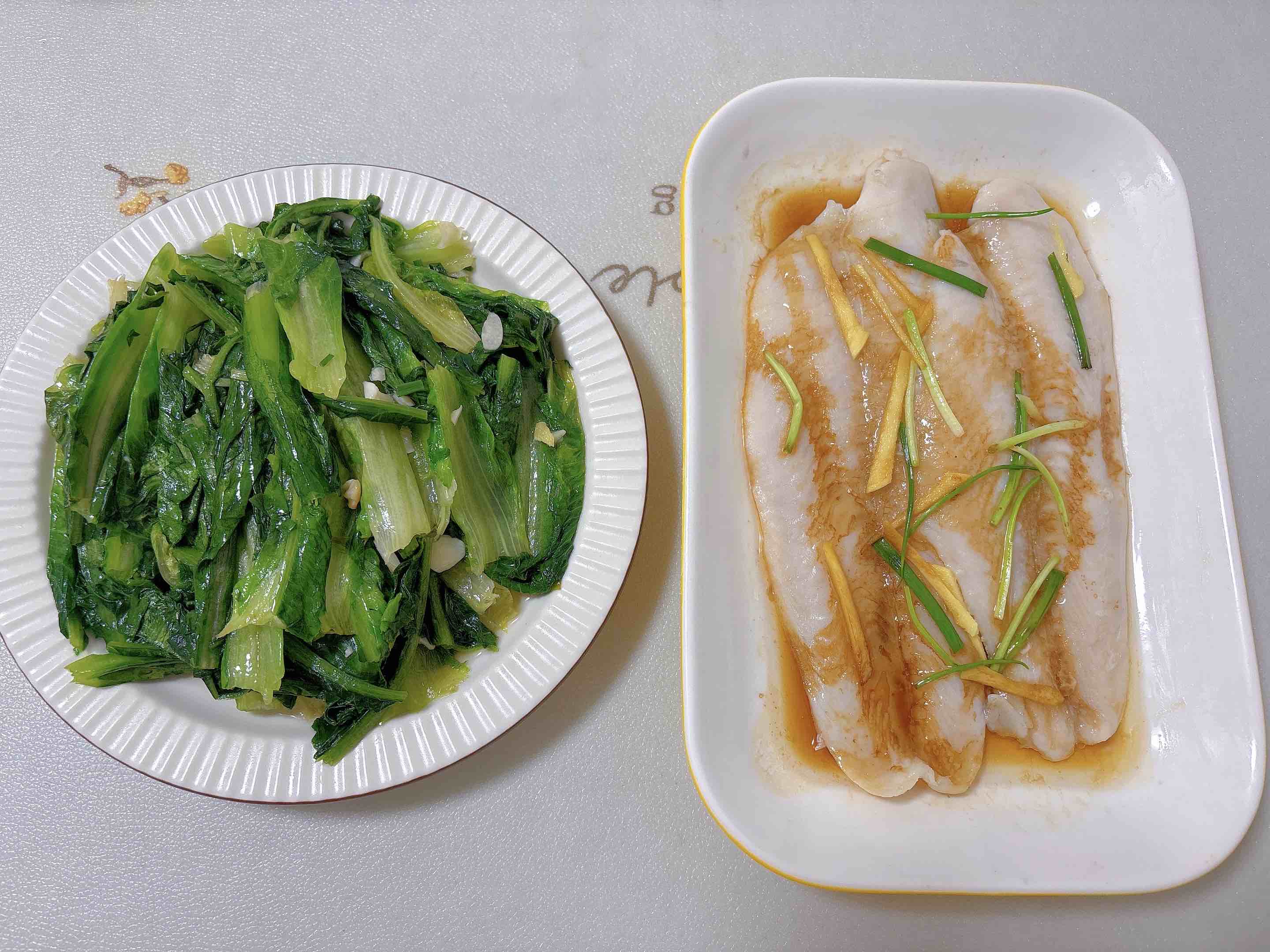 清炒油麦菜翠绿鲜嫩,清蒸龙利鱼鲜嫩入味,简单又健康。
