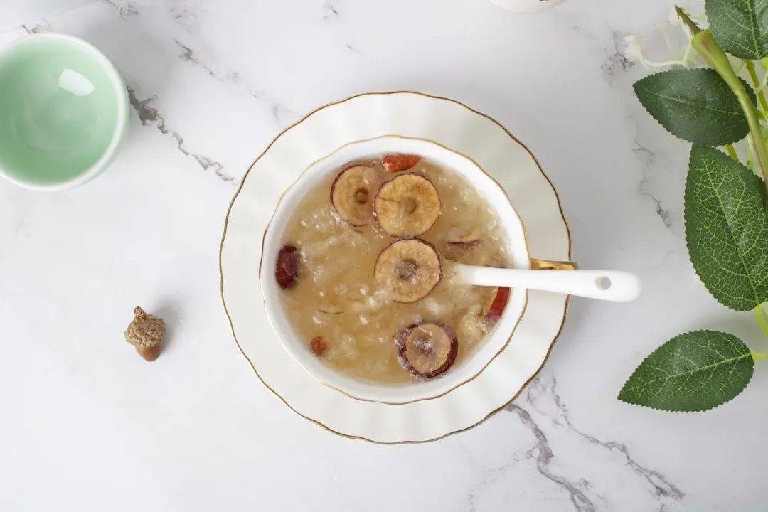 白果可固肾补肺,益气定喘。三物同组成主食,具有脾健胃,宁心益肺,收敛除湿,防癌抗癌的功效,对患者手术后身体虚弱者有很好的补益作用。