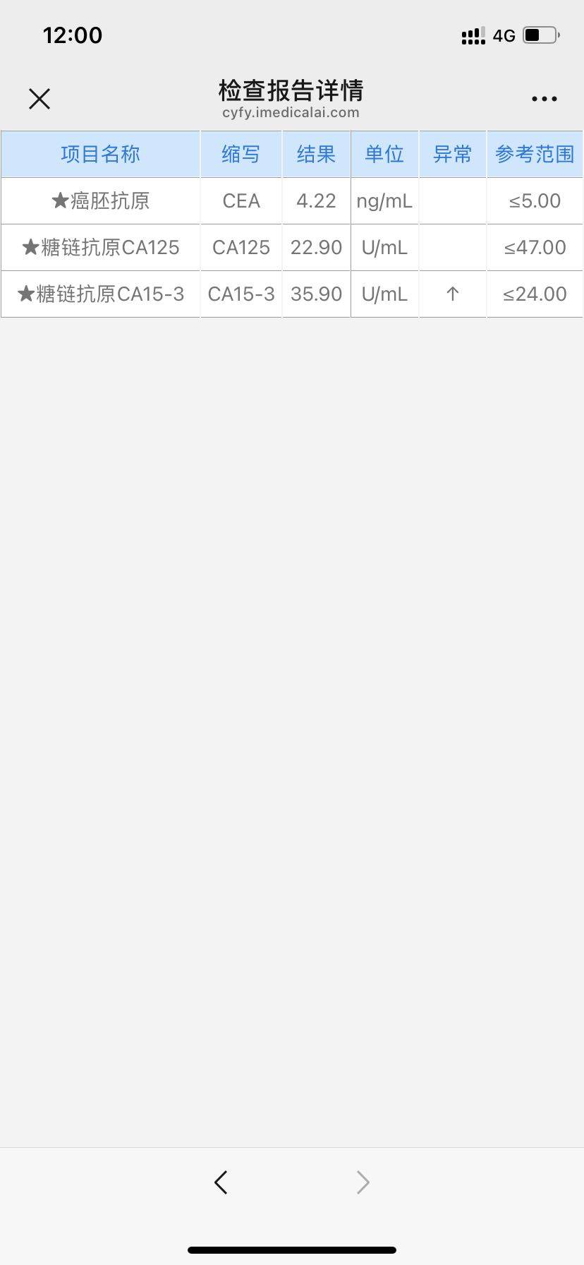 帮我分析 下癌胚抗原从4月开始在缓慢增高,4.22了,心里有些恐慌,别的检查没有问题,记得肺转那会最高才3.69,现在肺没事了