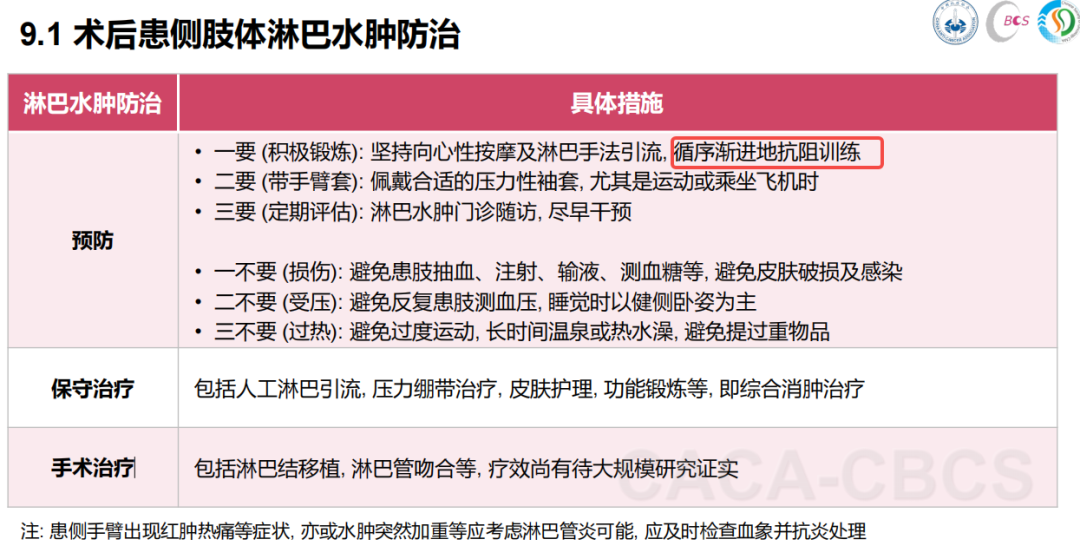 其次,要评估淋巴水肿的状态,建议在水肿稳定期再开始训练,急性期不宜进行。