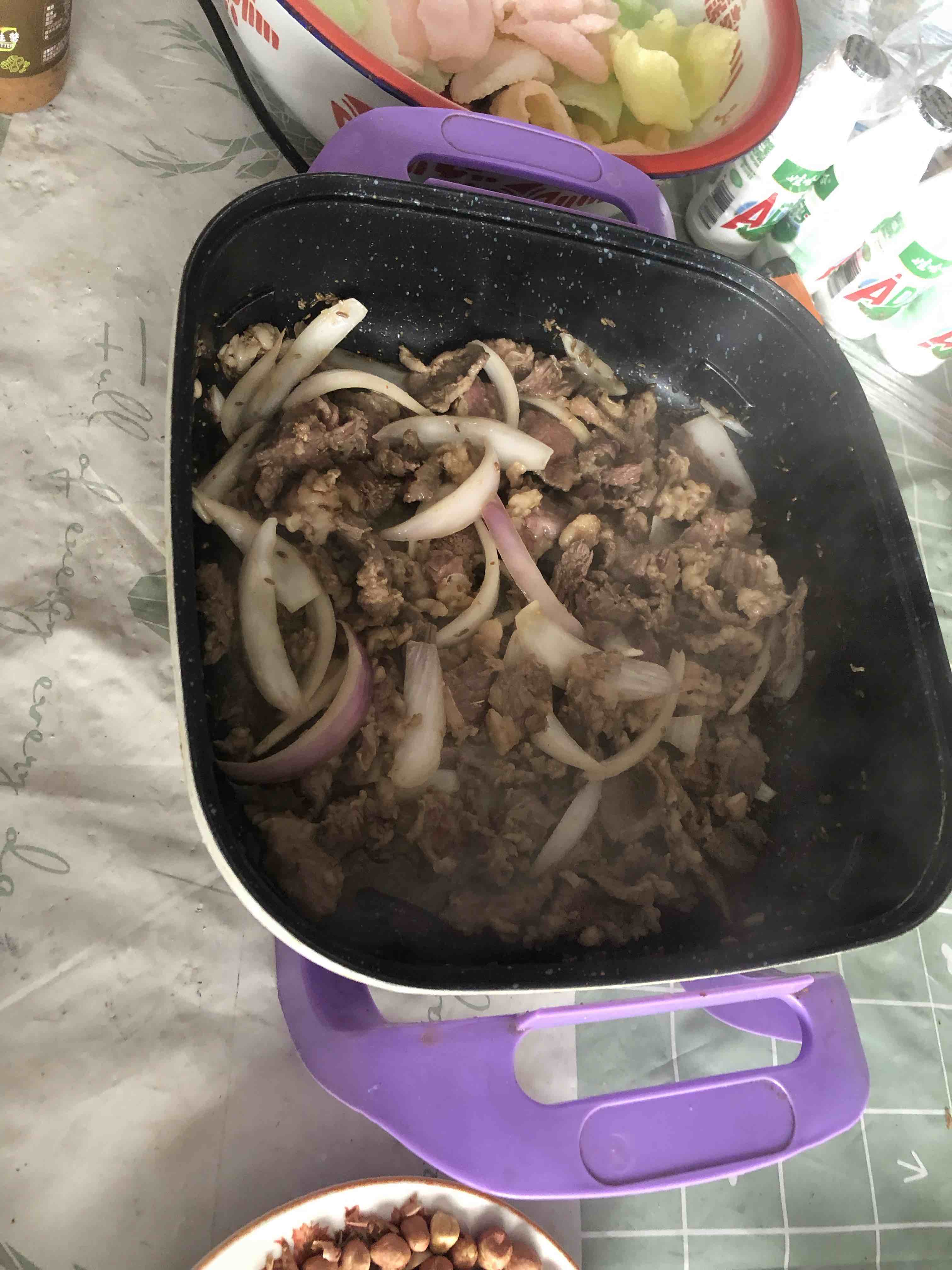 吃烤牛肉,不错。还有很多年没有吃过的炸虾皮 ,烤花生米😊😊还有皮冻。