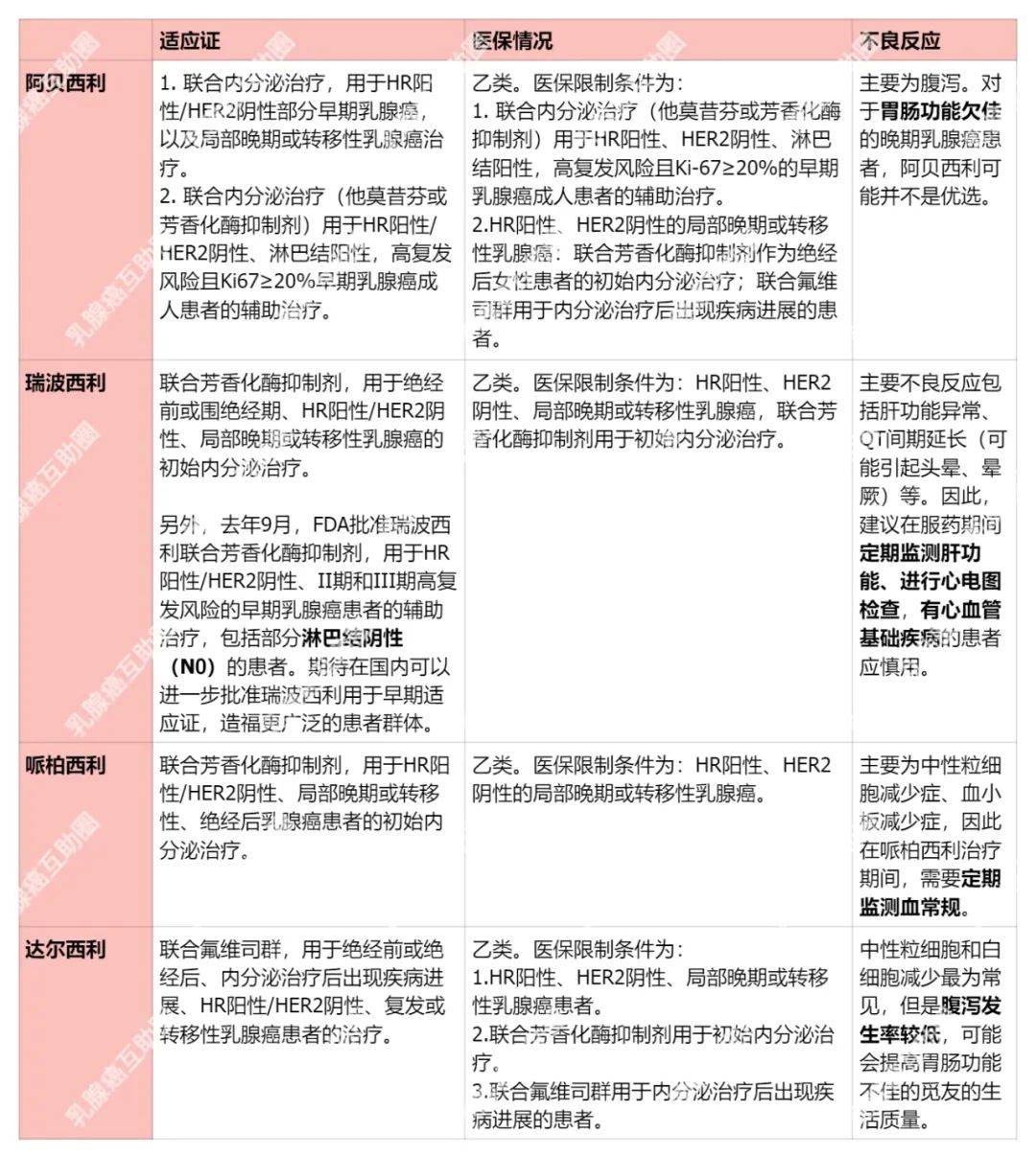 1.建议CDK4/6抑制剂与内分泌治疗药物联合用药