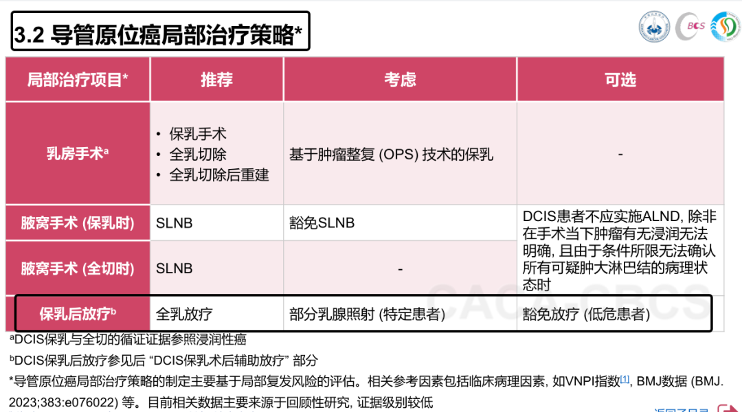 ②导管原位癌(DCIS)患者:年龄≥50岁、病理为低级别、单发病灶、无坏死、切缘足够等;