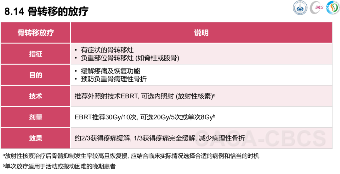 ④局部复发或转移性乳腺癌患者,如骨转移,放疗可用于缓解症状、控制病灶发展。