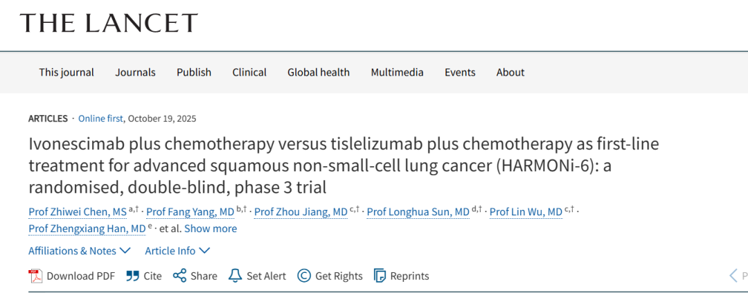 HARMONi-6是一项III期头对头临床试验,直接对比了晚期肺鳞癌患者一线使用依沃西单抗联合化疗与当前晚期肺鳞癌标准一线方案免疫联合化疗的疗效和安全性。研究结果不仅入选了2025ESMO主席论坛(仅收录全球最具突破性的顶尖研究,既往我国的研究极少入选),而且相关成果也同期发表在了四大国际顶刊之一的《柳叶刀》上,可谓中国成果,全球瞩目!