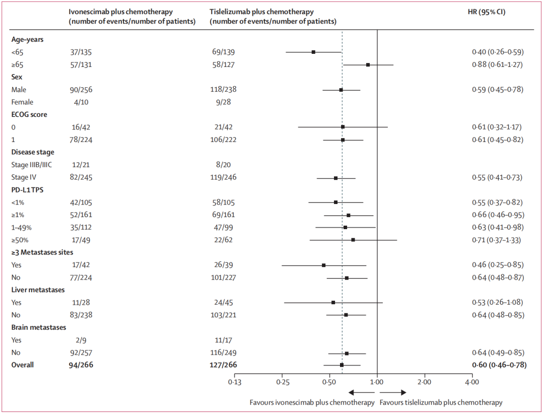 HARMONi-6研究结果显示:无论患者PD-L1表达状态如何、基线有没有转移,依沃西单抗联合化疗均能带来一致的临床获益,未出现明显疗效差异: