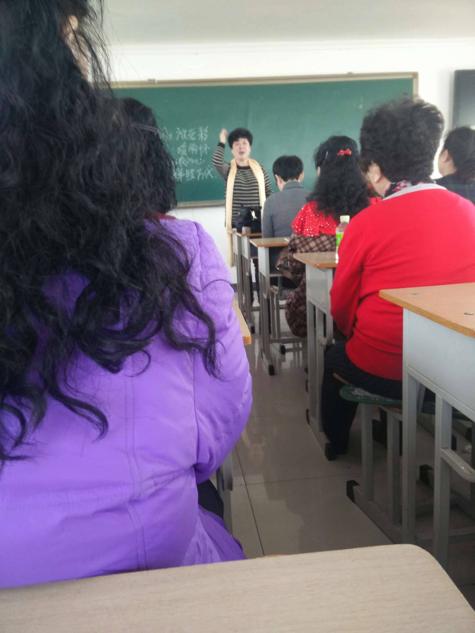 我昨天也去市老年大学合唱班上课了。我们是女声四声部合唱,唱的是《打起手鼓唱起歌》这首歌,欢快的旋律使人精神振奋。