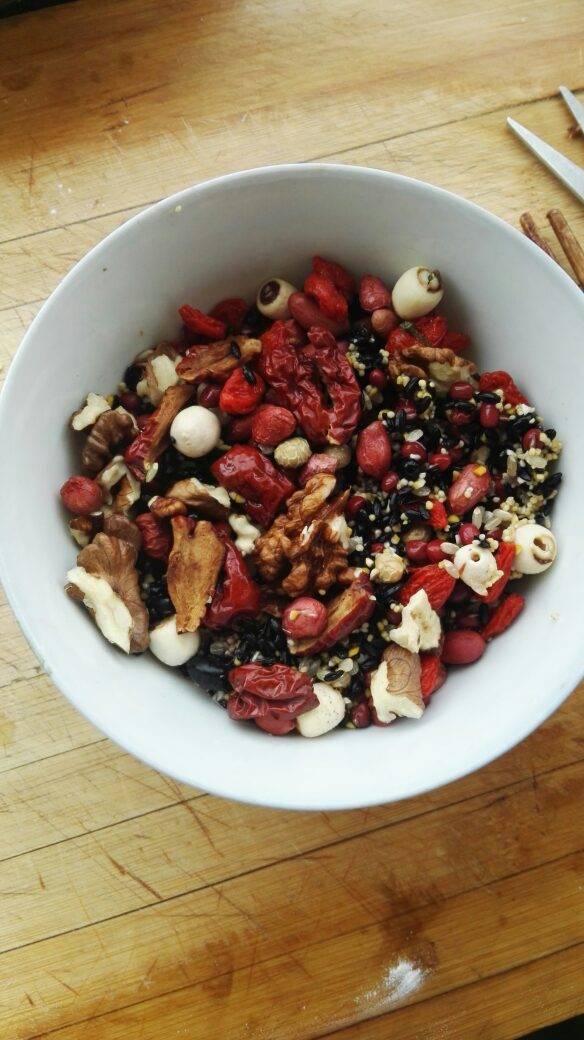杂粮糊?是用豆浆机打成糊状吗?看见那一碗配料好有营养哦