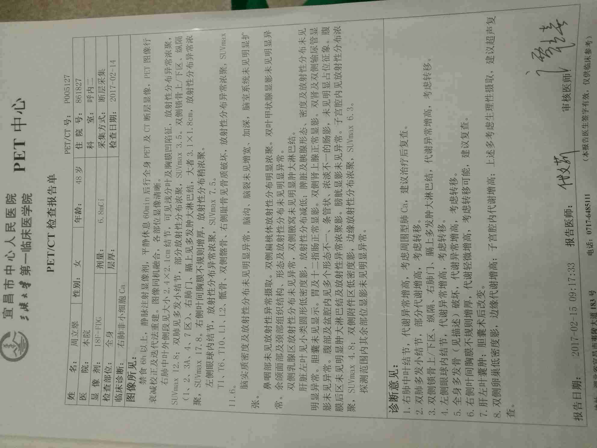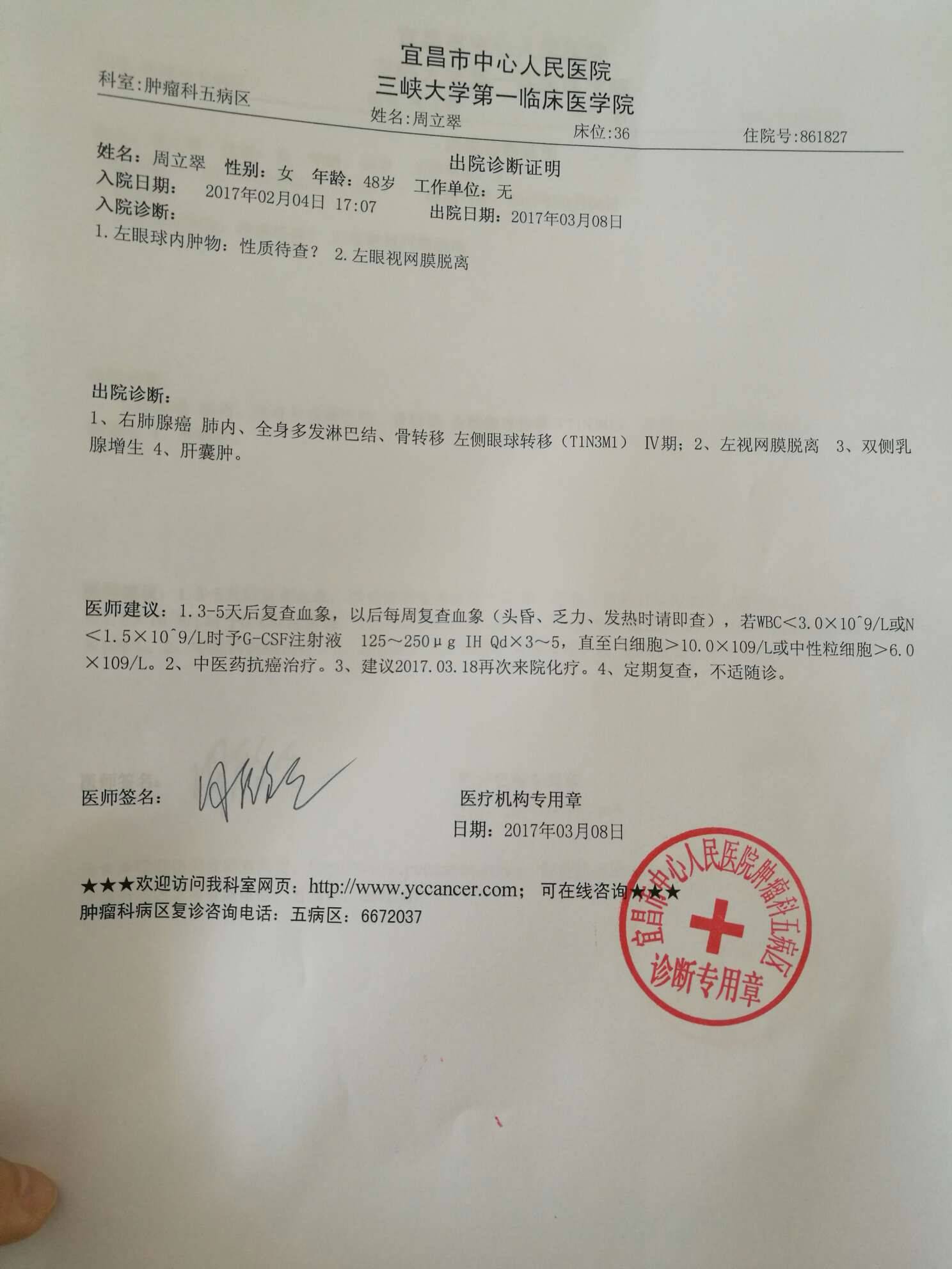 妈妈肺癌晚期,刚开始治疗,宜昌