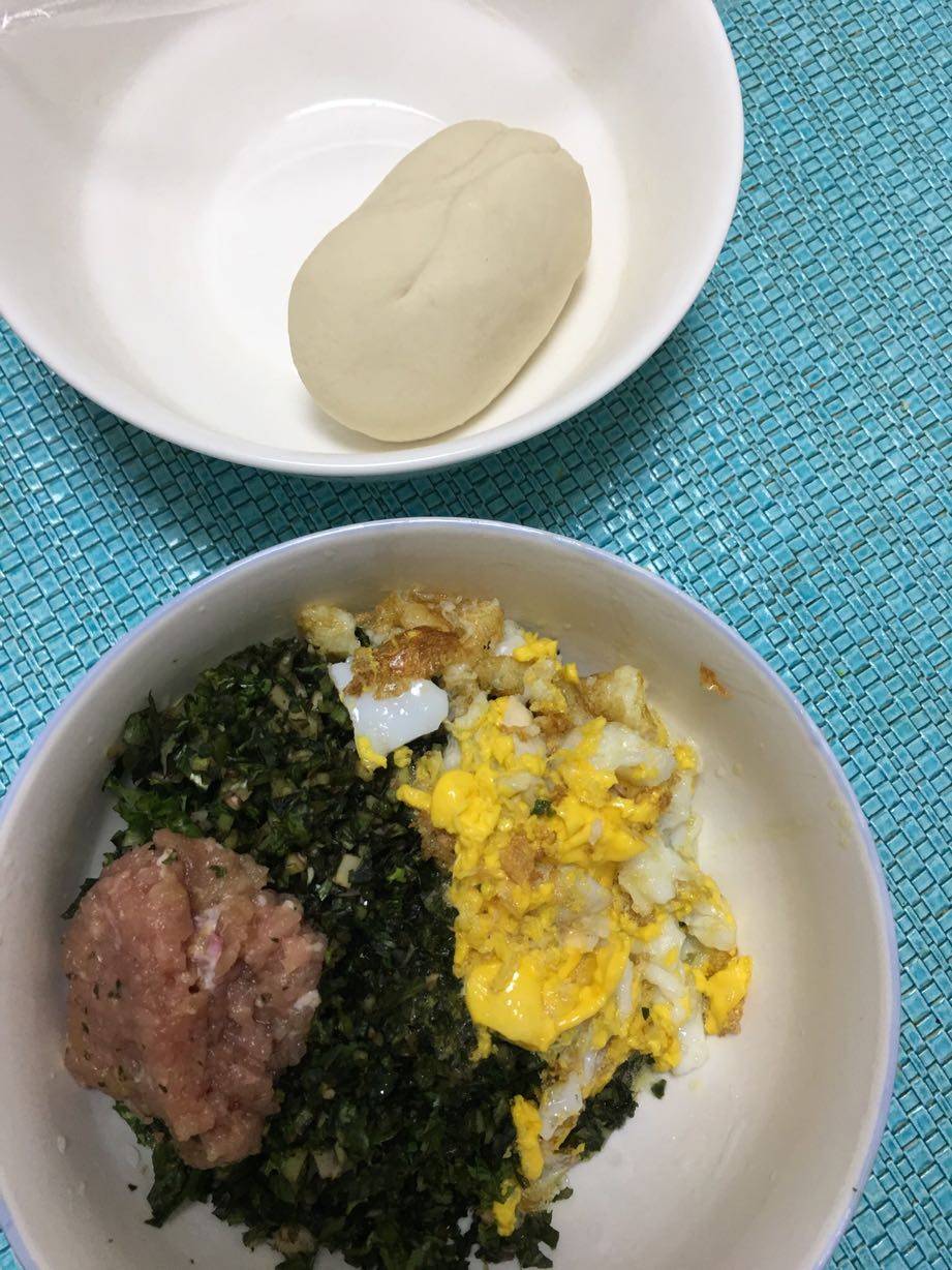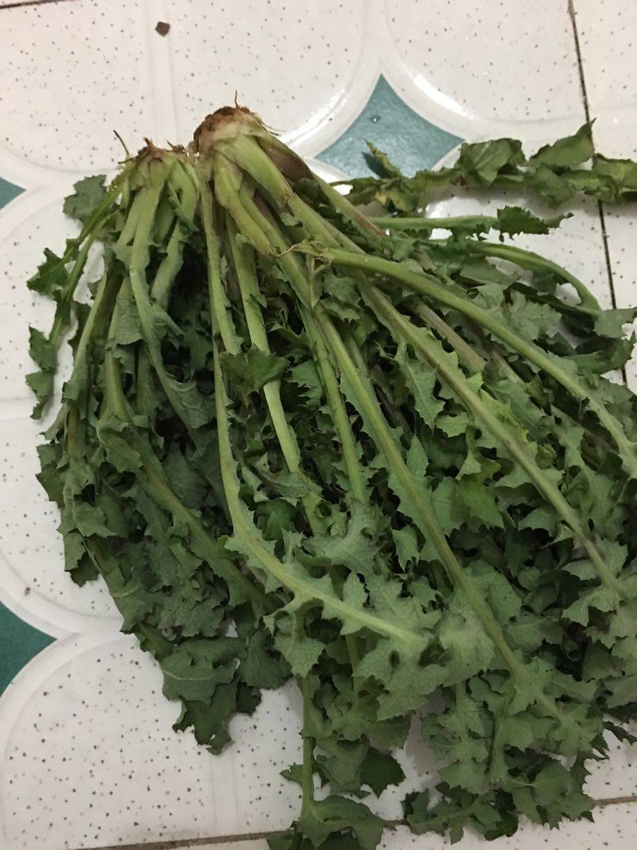材料:少许荞麦粉丶面粉,鸭蛋一只,瘦肉少许,蒲公英一把