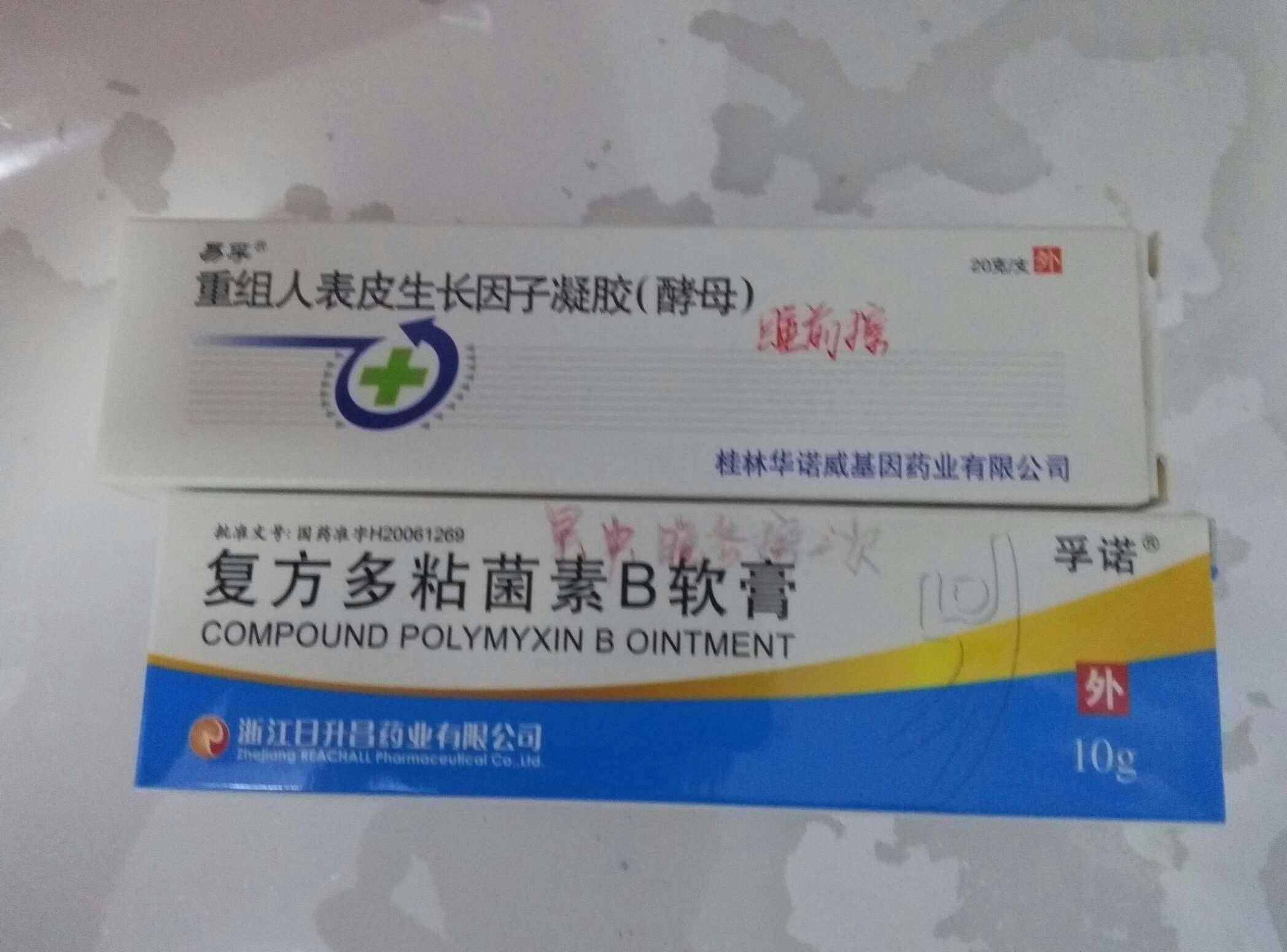 放疗完第15天左右腋下靠近背部有一片皮肤破皮,有疼痛感,去医院皮肤科看医生给开了两种外用药,用了才三天情况明显好转,创面开始愈合了。具体用法:生长因子每晚睡前擦在皮肤创面,软膏早中晚各擦一次。