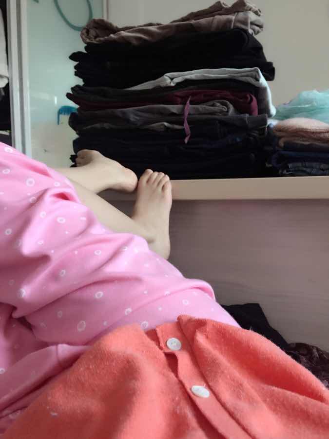 ,以此照片留念,以后买衣服节制一些。让我再躺一会