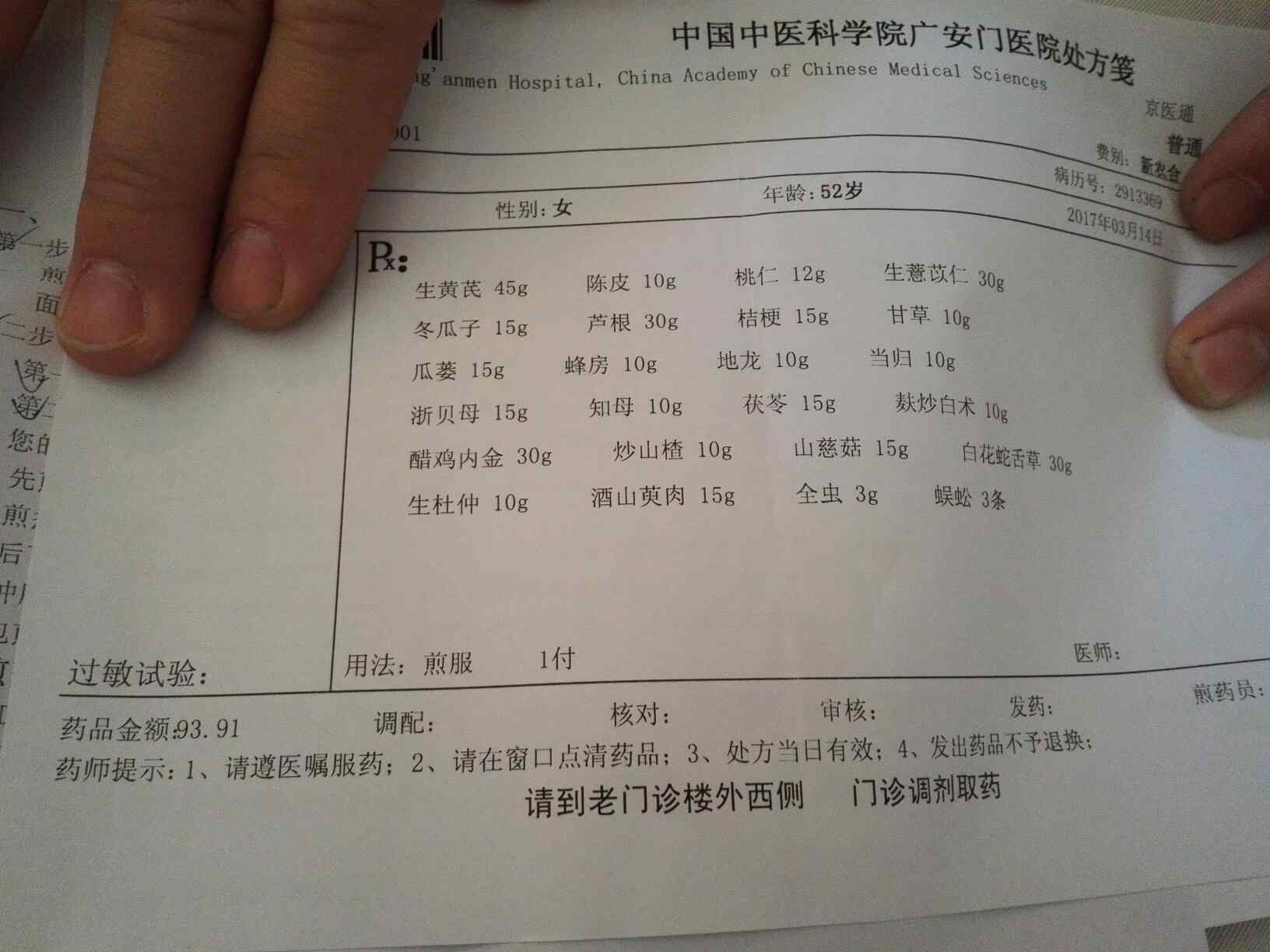 我今天陪妈妈去中国中医科学院广安门医院开的中药