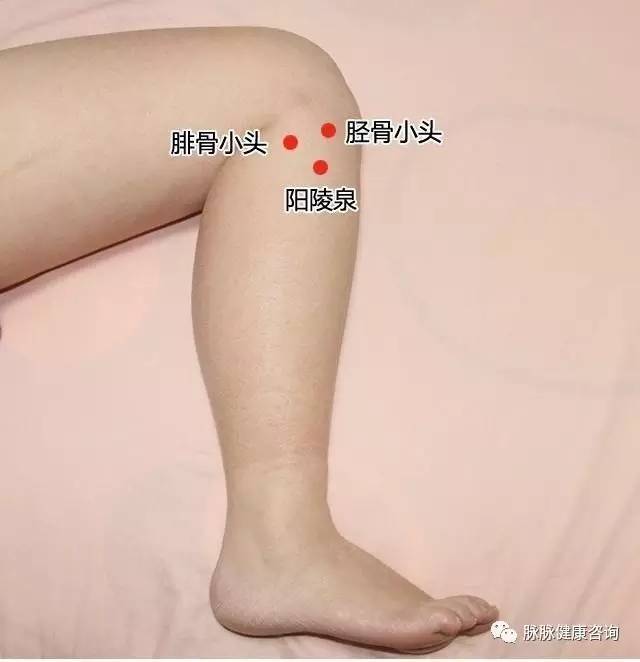 阳陵泉穴位于我们小腿外膝眼下面三寸的地方。您可以先找到外膝眼(在髌骨外侧下方的凹陷处),然后用您除了大拇指外的四指平放在外膝眼下方,另一侧腓骨小头下方凹陷处就是阳陵泉穴。