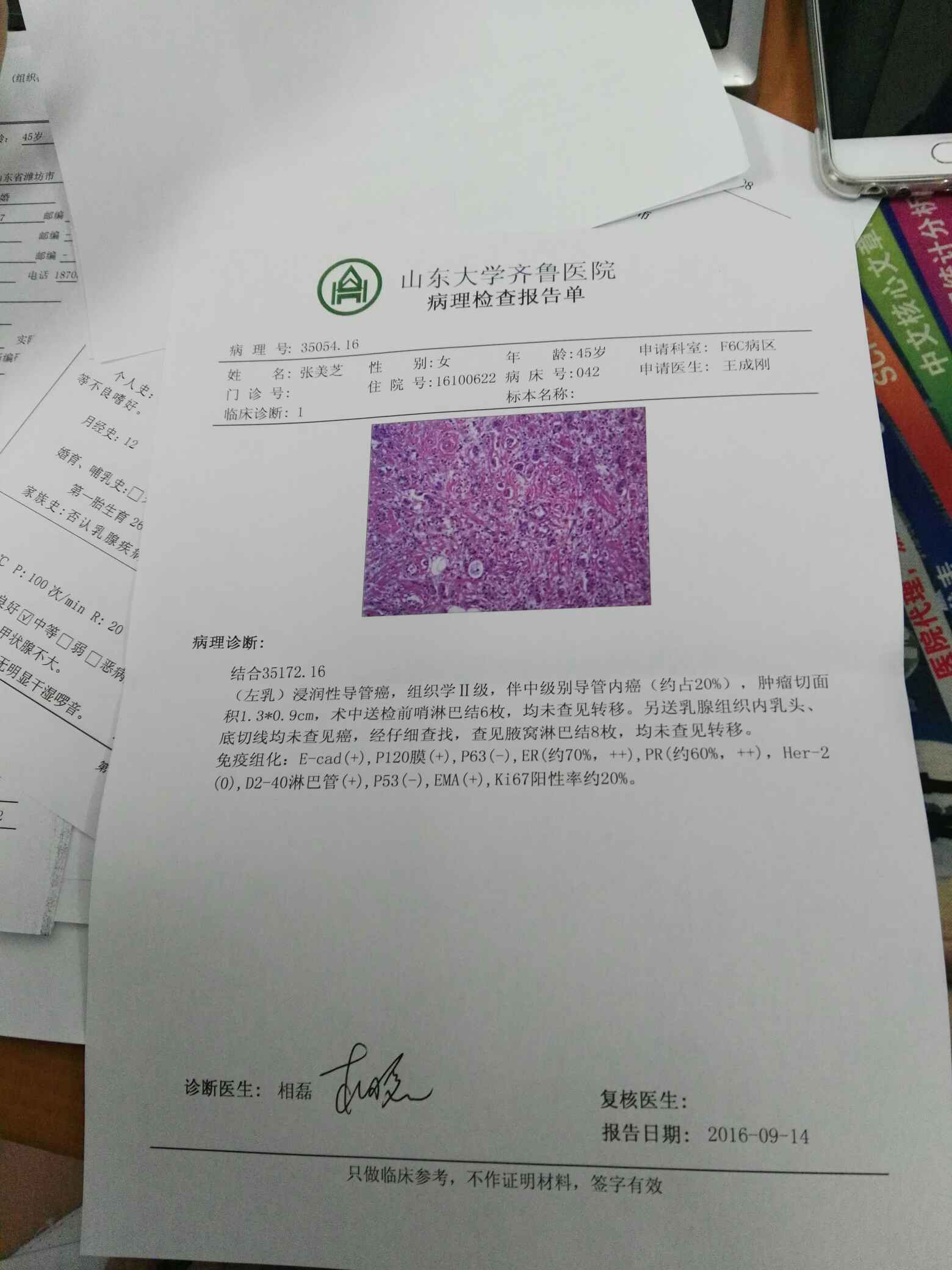 这个病理挺好的,两阳一阴,ki67也不高,愈后很好的!