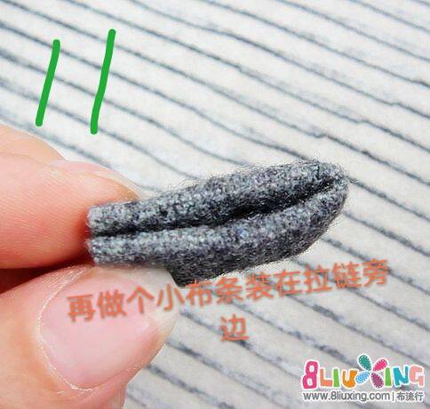 第十一步,小布条对折,做成小布扣