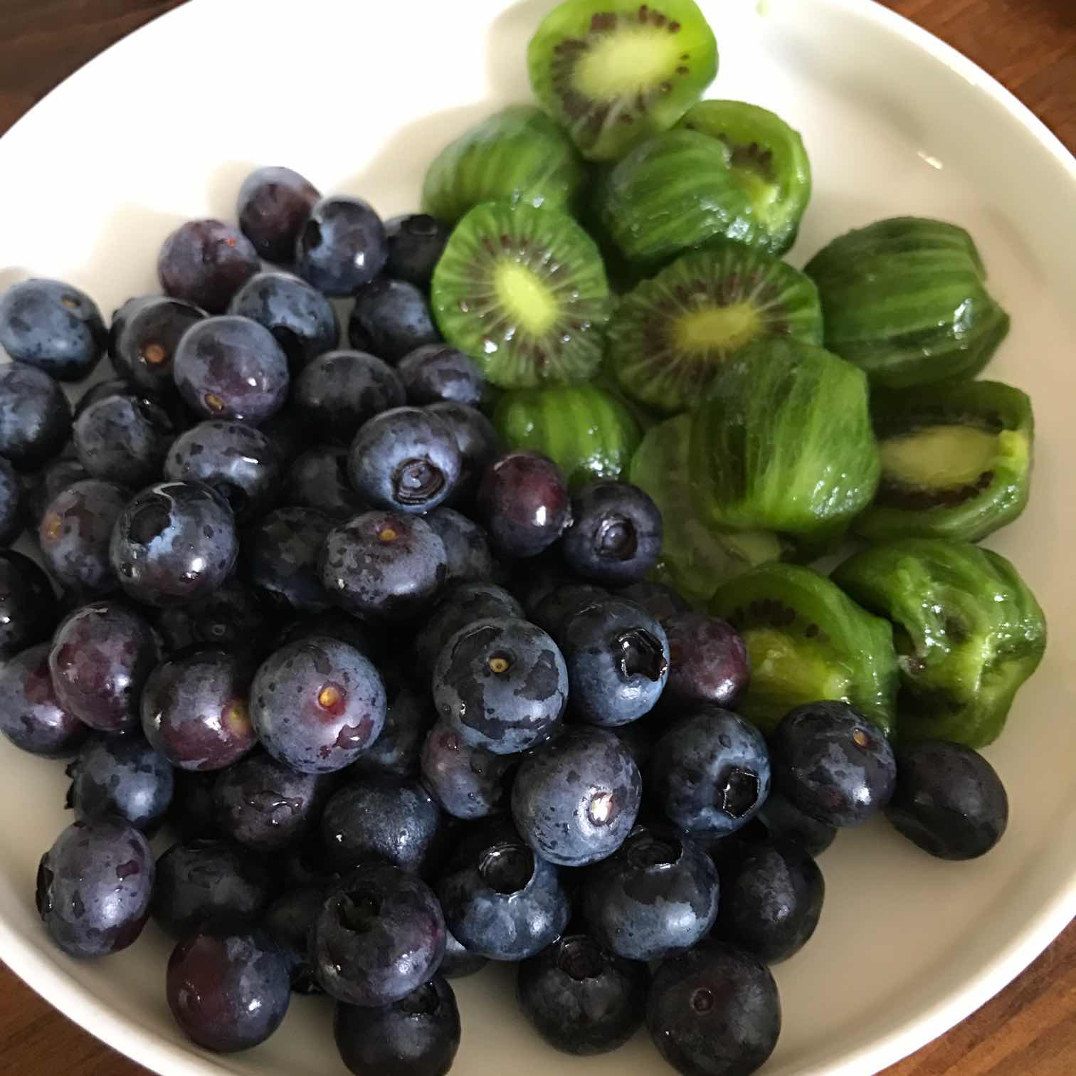 中午姐妹们送了迷你猕猴桃和蓝莓给我,很好吃!